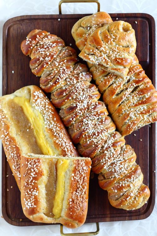 Samasta pullataikinasta voi tehdä myös täytettyjä, letitettyjä pitkoja.