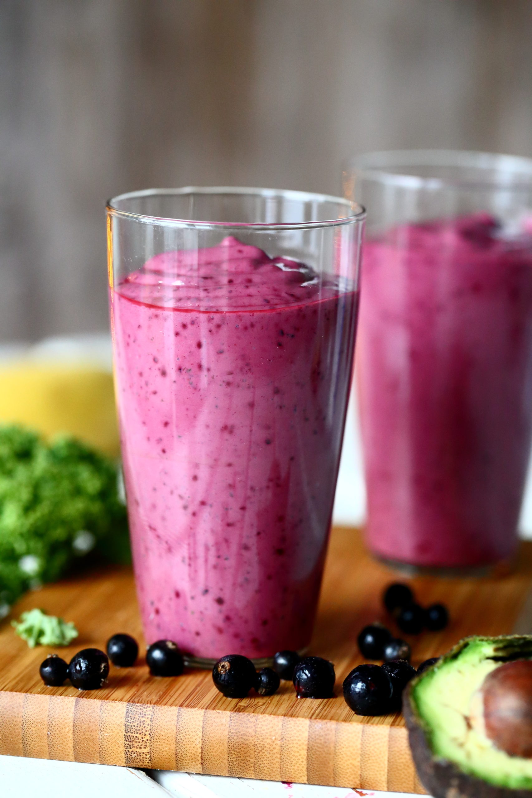 Tällaisen mustaherukkaisen smoothien myötä olen oppinut ottamaan avocadon mukaan ruokavaliooni. Se holahtaa smoothien joukkoon sileäksi massaksi ja tekee siitä hieman täyteläisemmän ilman, että avocado itsessään maistuu oikeastaan lainkaan. Avocadosta mukaan tulee myös hyviä rasvoja ja smoothie myös pitää nälän paremmin loitolla.