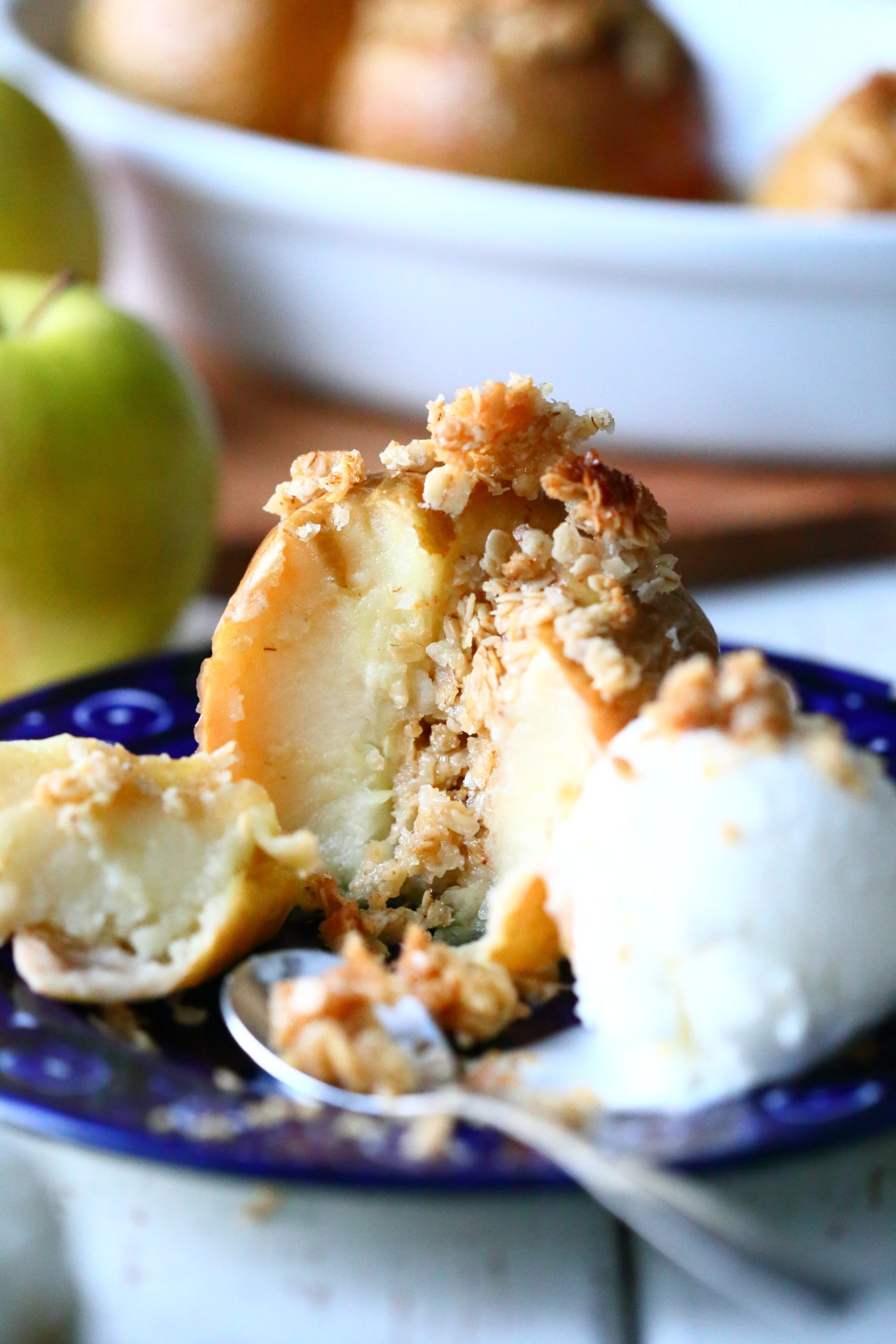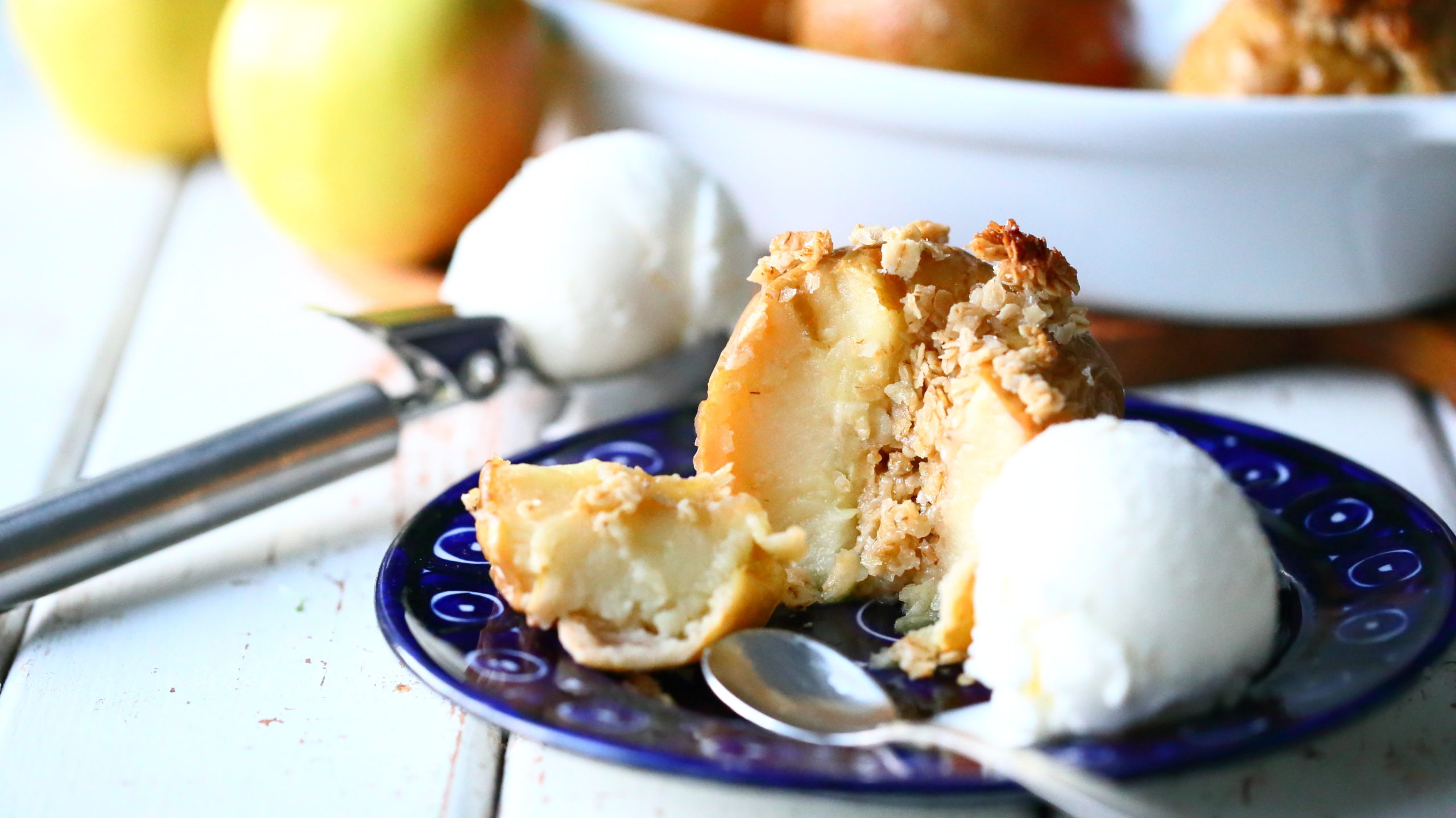 Paista uuni alatasolla 200 asteessa noin 30 minuuttia tai kunnes omenat ovat kypsiä.