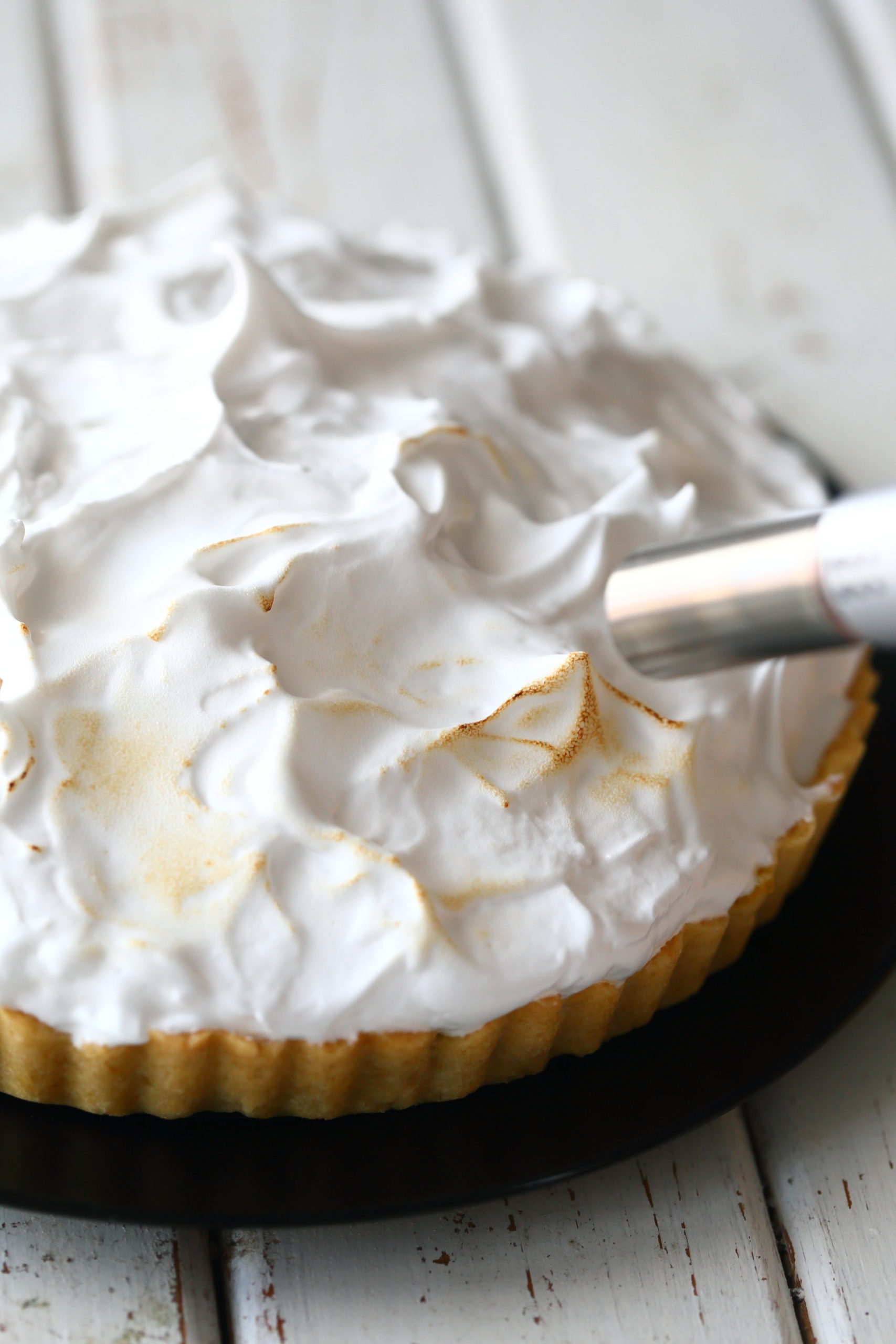 Levitä marenki piirakan päälle ja polta marengin pinta tohottimella.