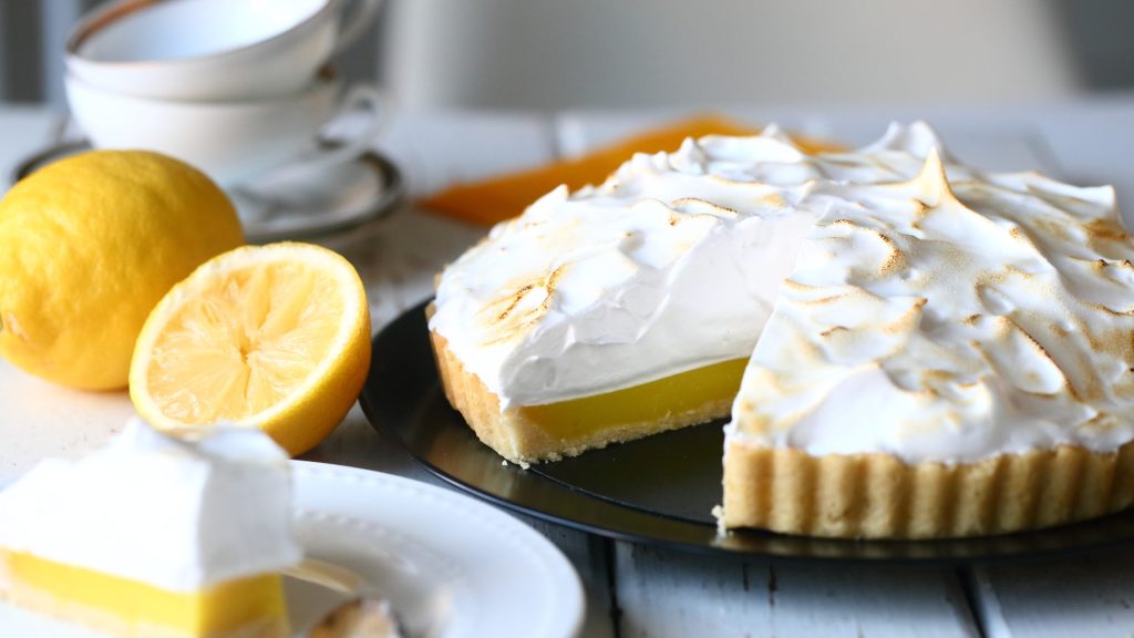 Tässä vegaanisessa sitruuna-marenkipiirakassa on ohut, miedon makuinen pohja. Pohjan päällä on kerros makeankirpeää, suussasulavaa, pehmeää sitruunaista täytettä, joka on munien sijasta hyydytetty maissitärkkelysjauhoilla ja soijajogurtilla. Kokonaisuuden kruunaa aquafabasta eli säilykekikherneiden liemestä ja sokerista tehty munaton marenki, johon saa tohottimella polttamalla kauniin pinnan.