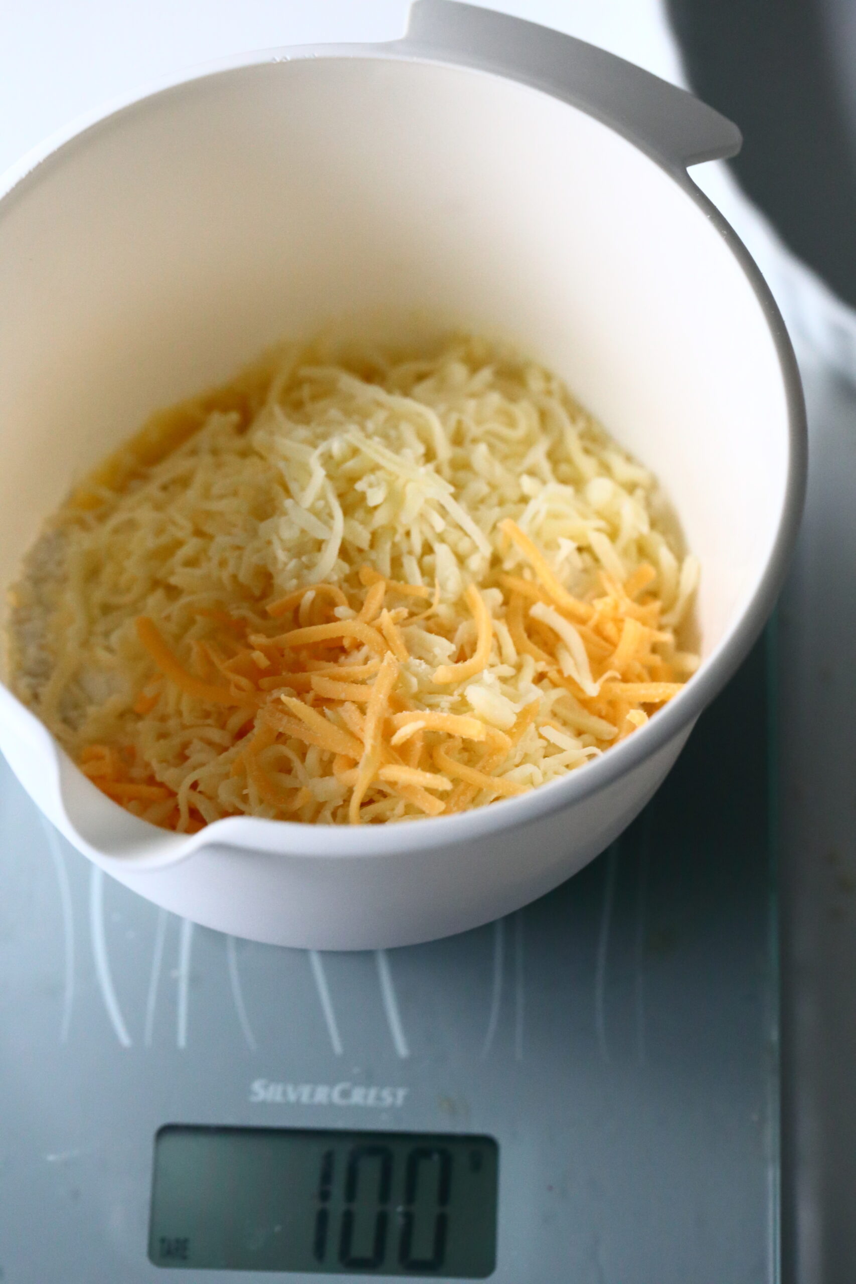 Taikinaa varten tarvitset siis rasvaa, jauhoja ja juustoraastetta saman verran. Esimerkiksi 26-28 cm vuokaan näitä tarvitaan 100 g. Pienempään, vaikkapa 20 cm vuokaan tarvitaan noin puolet eli 50 g kutakin ainetta. Lisätietoa eri kokoisten vuokien ja niiden taikinamäärien muuntamisesta löydät muunnostaulukosta, josta ”Muunnostaulukko erikokoisille pyöreille kakkuvuoille”-otsikon alta löytyy kertoimet eri kokoisille piirakkavuoille. Noita kertoimia voi käyttää apuna, jos haluaa tehdä taikinan eri kokoiseen vuokaan, kuin ohjeessa mainittuun n. 26-28 cm vuokaan.