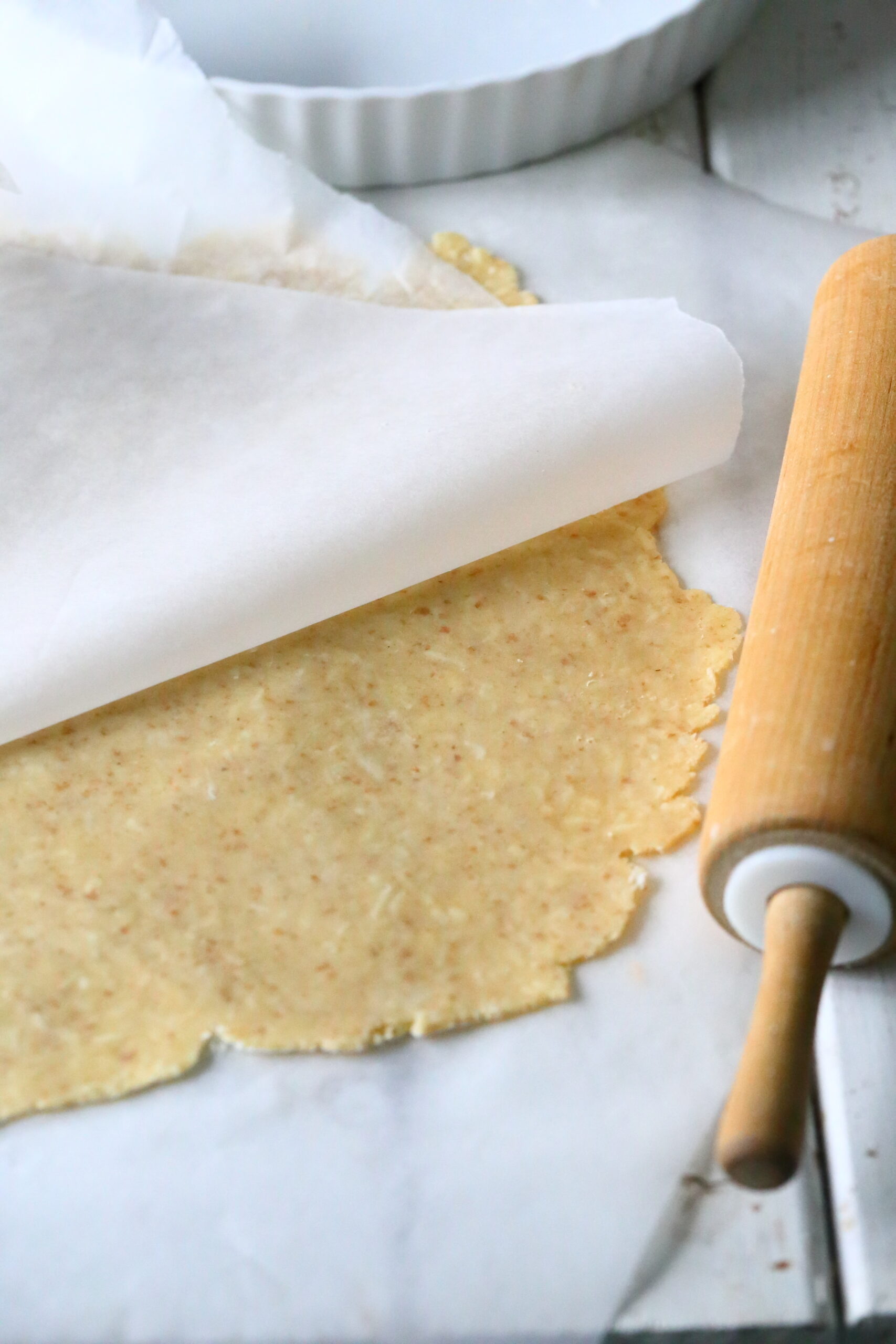 Taikinaa tulee ohut kerros, jolloin se on helpompi saada tasaiseksi esimerkiksi kaulitsemalla se kahden leivinpaperin välissä. Tällöin taikinan on hyvä olla kylmä, niin se ei tartu leivinpaperiin niin helposti. Taikinan voi toki myös painella vuokaan käsin, mutta ainakin itse mieluummin kaulin, sillä se on nopeampaa ja lopputuloskin tasaisempi.