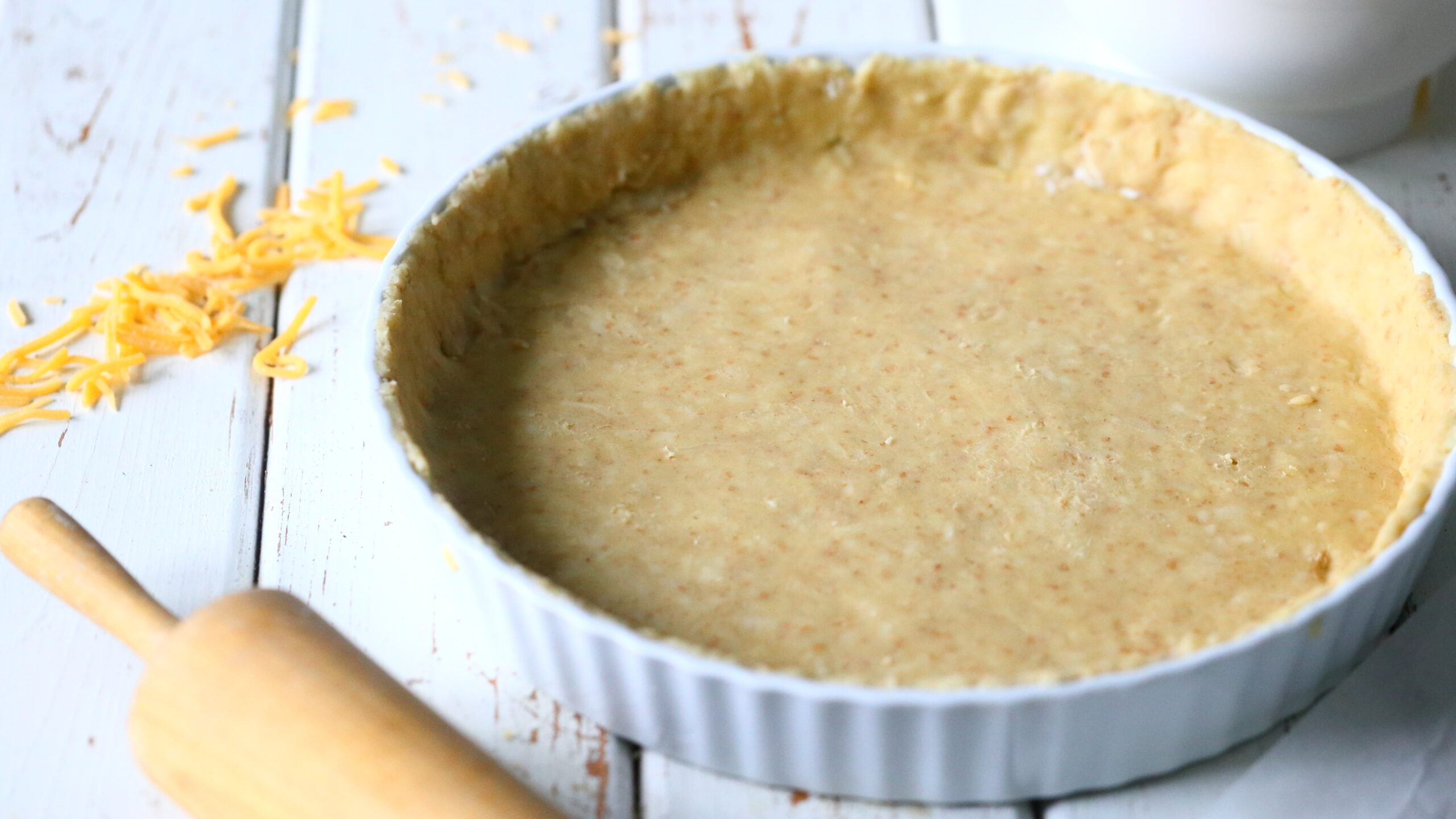 Piirakan pohjaa varten tarvitsen vain kolme ainetta ja kaikkia niistä grammamääräisesti saman verran; voita tai muuta kiinteää rasvaa, jauhoja ja juustoraastetta. Helppoa, eikö? Pohja on helppoutensa lisäksi myös munaton.