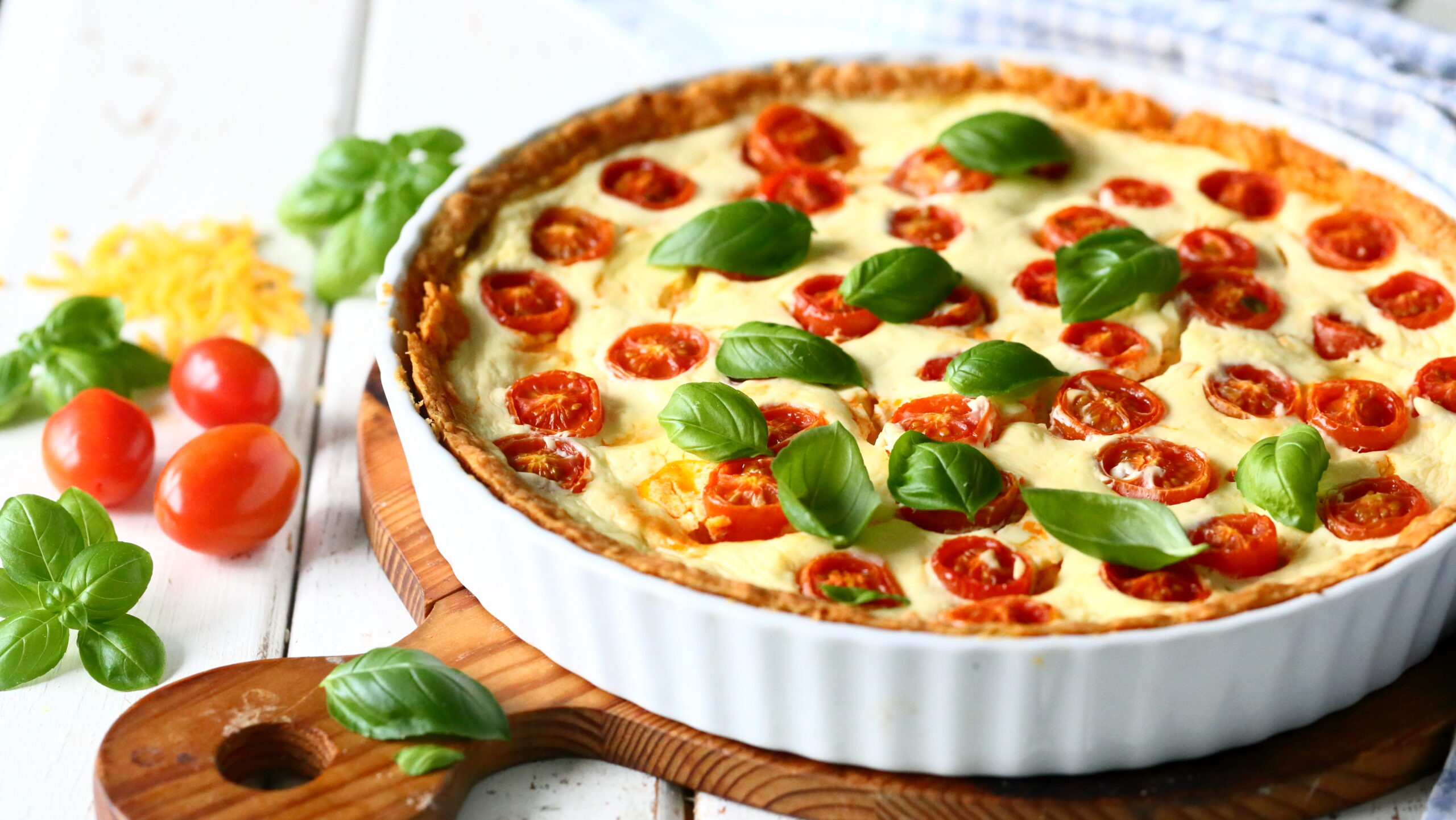Puolita tomaatit. Siivuta vuohenjuusto ja leikkaa siivut hieman pienemmiksi paloiksi. Sekoita tuorejuusto, ranskankerma ja muna sileäksi tahnaksi. Mausta suolalla ja pippurilla.