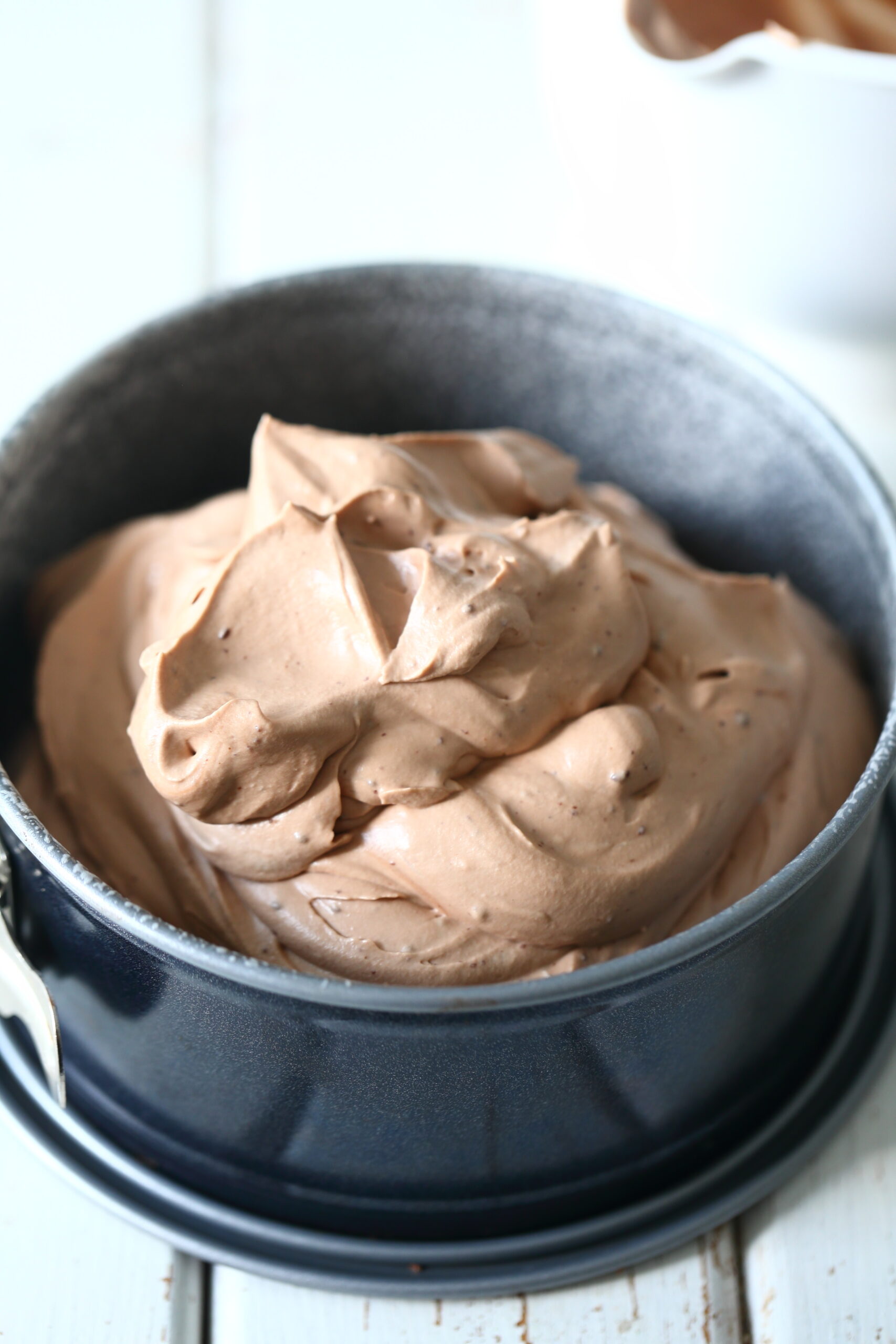 Vatkaa kerma tukevaksi vaahdoksi. Lämmitä Pätkiksiä miedolla teholla mikrossa noin 1 minuutti tai kunnes ne pehmenevät. Sekoittele pätkiksiä välillä, jotta ne eivät pala. Lisää pehmenneiden pätkisten joukkoon huoneenlämpöinen tuorejuusto ja vatkaa voimakkaasti sekaisin. Lisää pätkis-tuorejuustoseos kermavaahdon joukkoon ja vatkaa kunnolla nopeasti sekaisin. Täytteen pitäisi olla tässä vaiheessa pehmeää, mutta sen verran jämäkkää, että se pysyy muodossaan (ks. kuva alla).