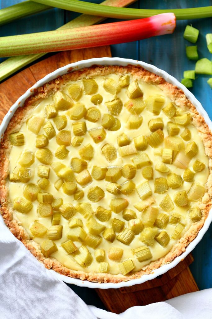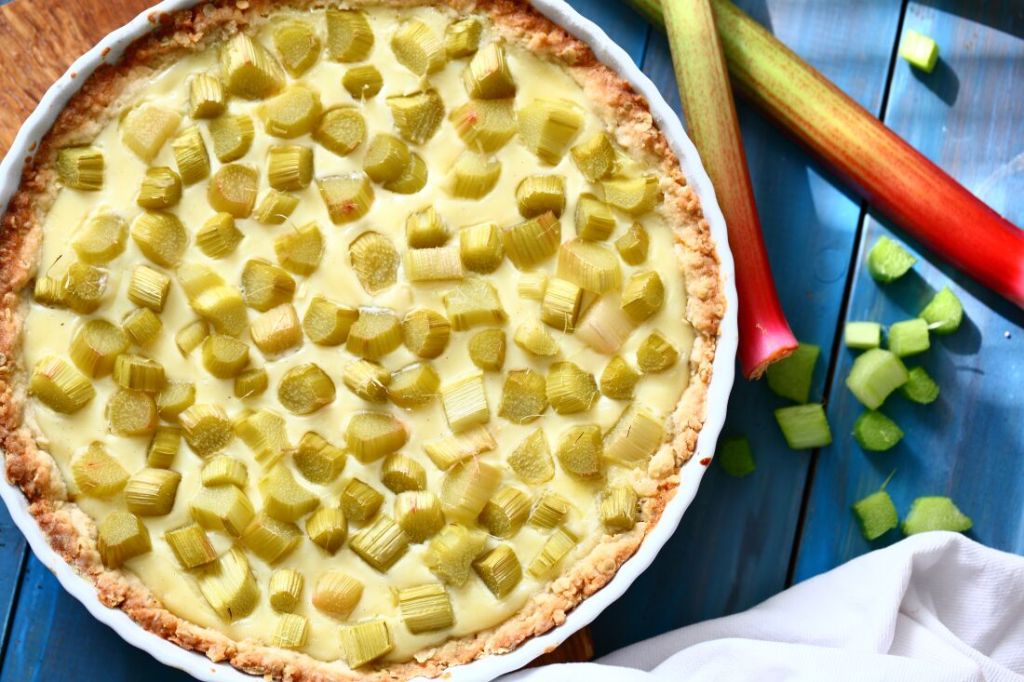 Herkullinen valkosuklaa-raparperipiirakka on nimensä mukaisesti herkullinen. Siinä on pehmeä valkosuklainen, miedonmakuinen täyte, joka maistuu niiin hyvältä kirpeämmän raparperin kanssa.