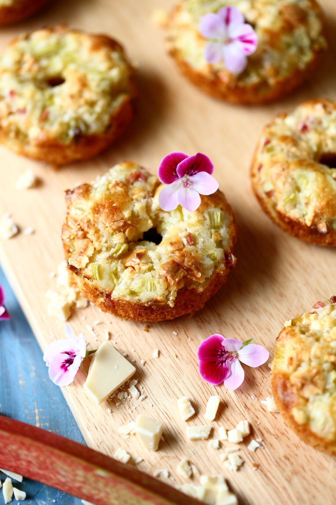 Helpot ja nopeat raparperidonitsit valkosuklaalla ovat kuin pieniä makeankirpeitä muffinsseja, mutta donitsin muodossa. Oletko jo kokeillut?