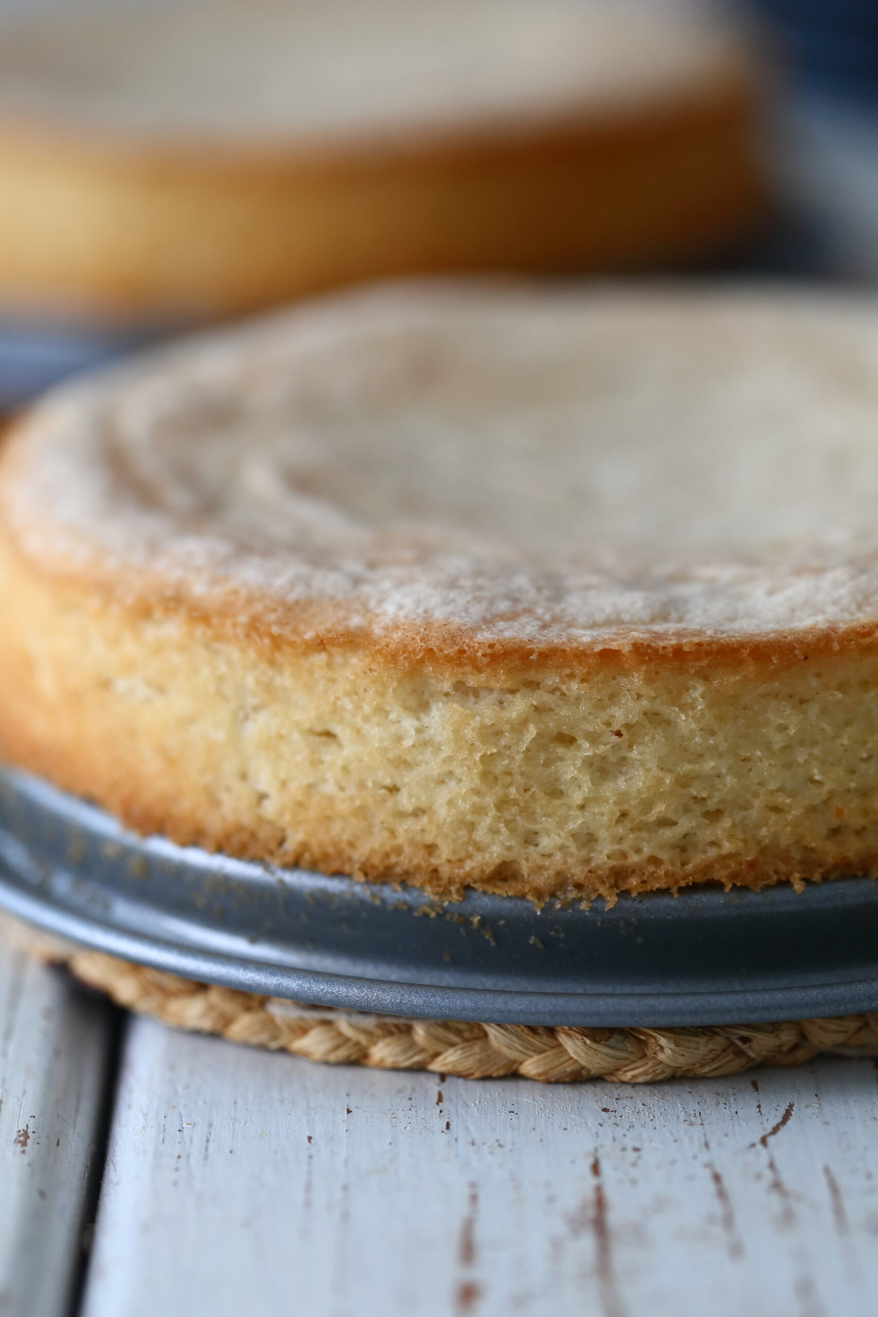 Miten pohjan kanssa sitten kävi? Pohjasta tuli aika hyvä korvike normaalille sokerikakkupohjalle. Se oli ilmakuplia täynnä ja koostumus oli pehmeä. Ainakin tuoreeltaan. Jäähtyessään pohja hieman kuivui (vaikka suojasin sen kaikin mahdollisin keinoin), mutta kuivumisesta pääsi eroon kostuttamalla pohja ennen käyttöä. Maku muistutti sokerikakkupohjaa.
