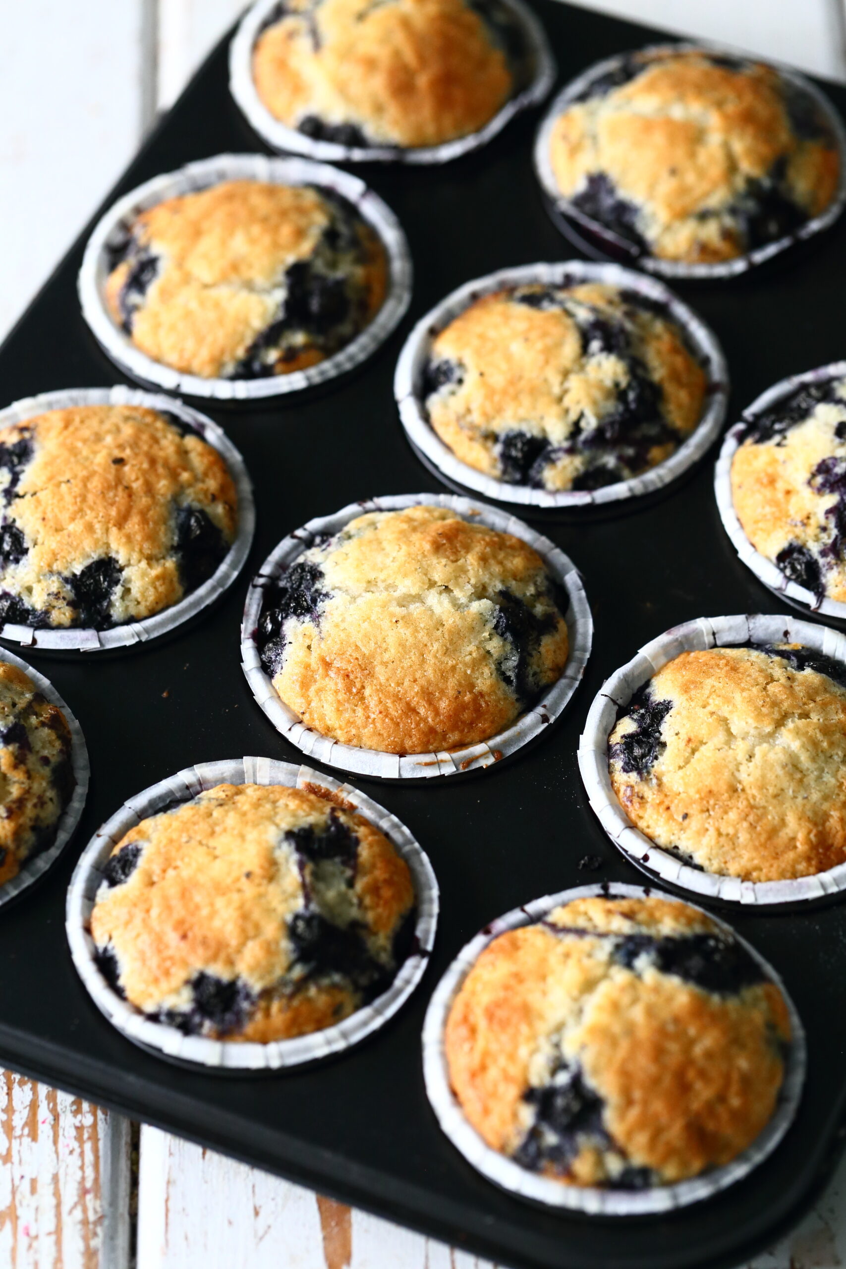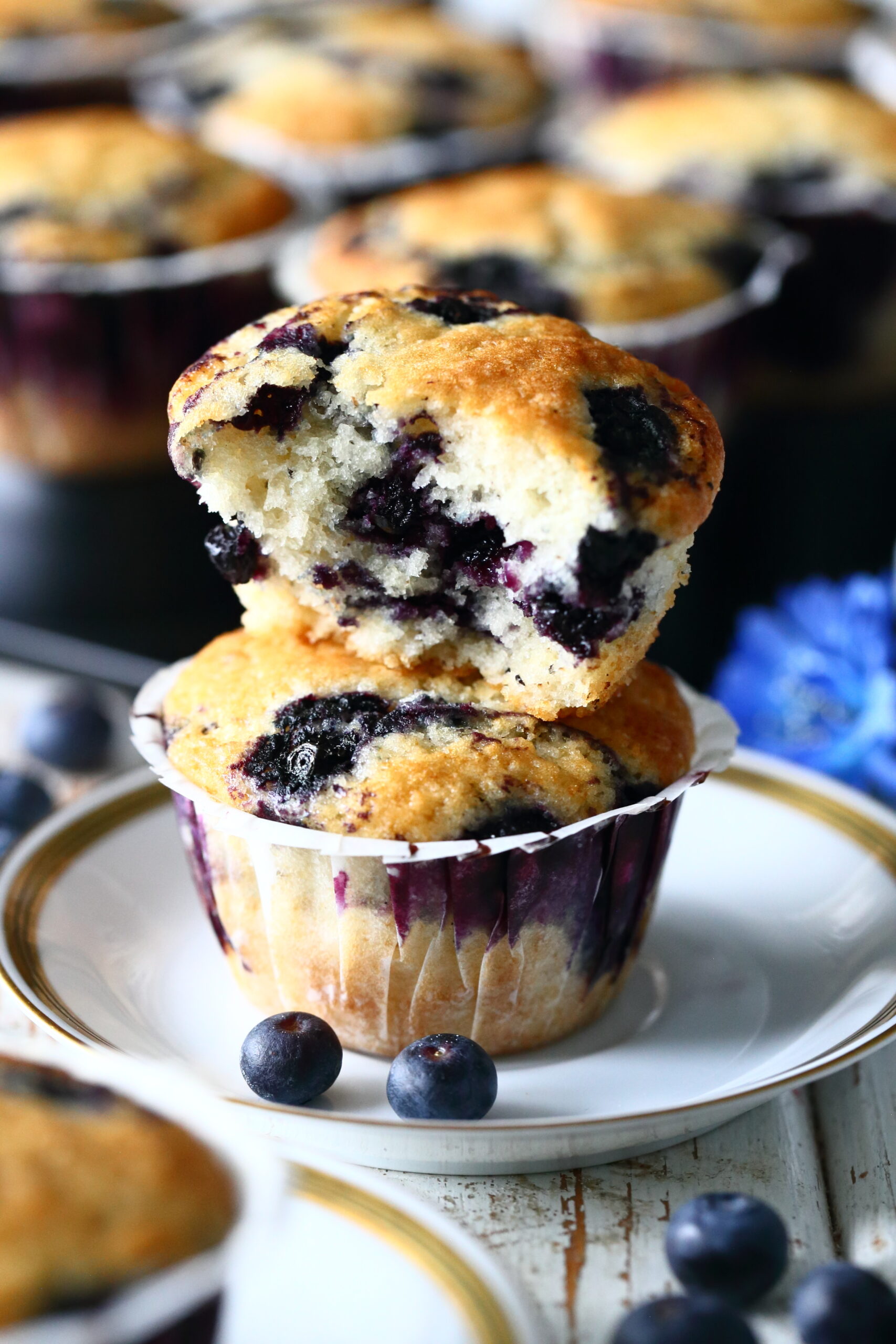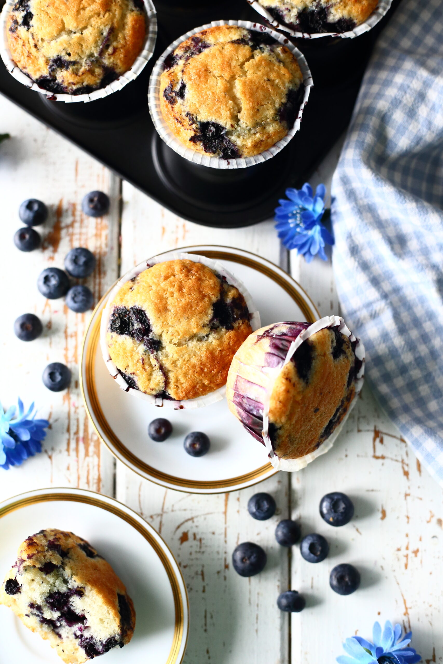 Nämä ovat varmaan parhaat mustikkamuffinssit, jotka olen koskaan leiponut! Näistä tuli ihanan pehmeitä, todella kuohkeita ja superherkullisia. Nämä (ainakin tällä hetkellä) maailman parhaat mustikkamuffinssit onnistuvat helposti ilman vatkaimia, vain yhdessä kulhossa sekoittamalla aineet yhteen. Aikaa tekemiseen kuluu siis vain muutama minuutti. Helppoa, nopeaa ja hyvää, nam!