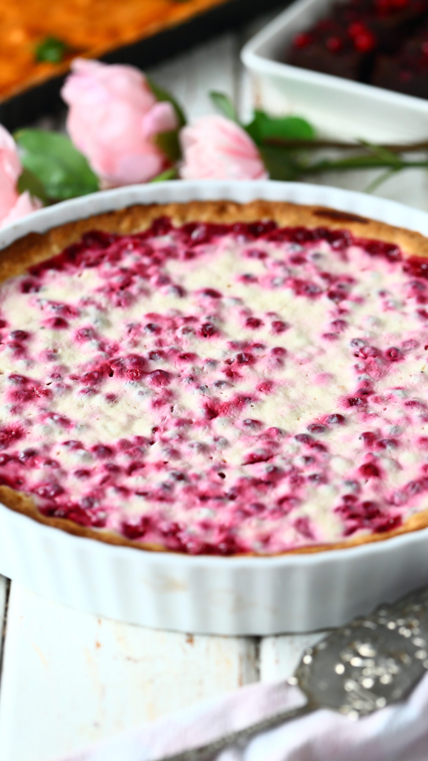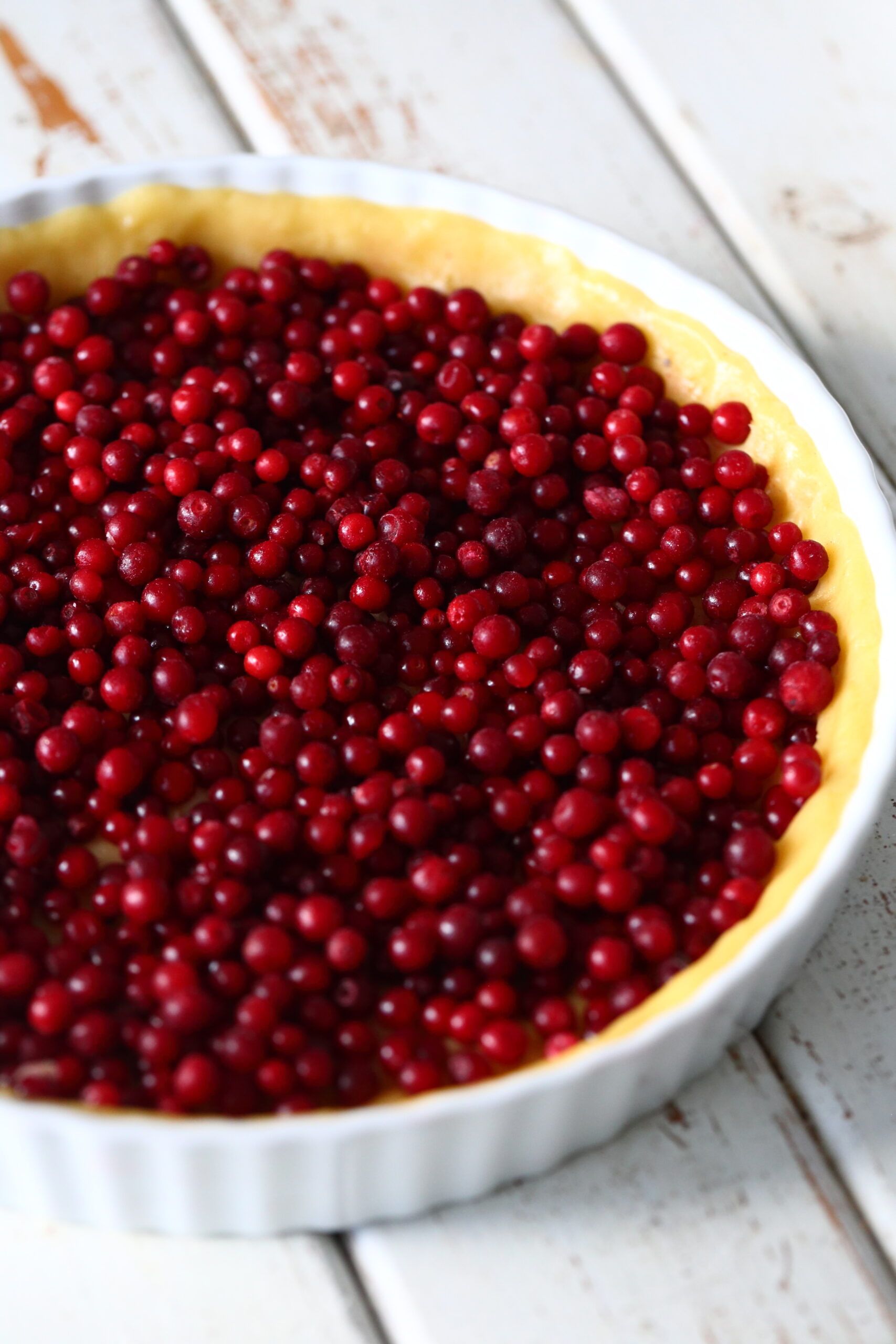 * Käytin piirakkaan pakastepuolukoita, mutta piirakan voi tehdä myös tuoreista puolukoista. Tämä saattaa vaikuttaa paistoaikaan, joten tarkkaile tilannetta.