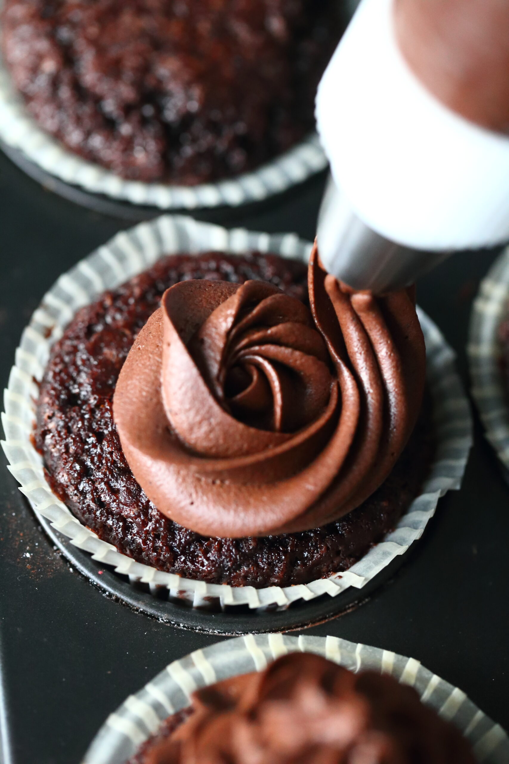 Suklaakuorrute kruunaa muffinssit ja sopii sekä täytekakun täytteeksi että kuorrutteeksi. Toki sitä voi syödä sellaisenaankin pahimpaan suklaannälkään… Tämä kuorrute päätyi jokin aika sitten nuoremman tyttäreni leipomien helppojen, munattomien suklaamuffinssien päälle. Noista muffinsseista lisää juttua lähipäivinä. EDIT. 28.10.2021: Nyt noiden munattomien suklaamuffinssien ohje löytyy blogista.
