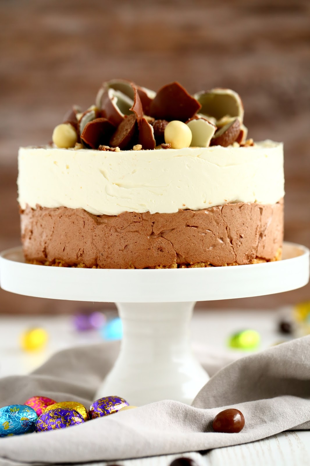 Kahden suklaan juustokakku on hieman hillitympi versio kolmen suklaan juustokakusta. Myös tämä kakku valmistuu helposti ilman liivatetta.