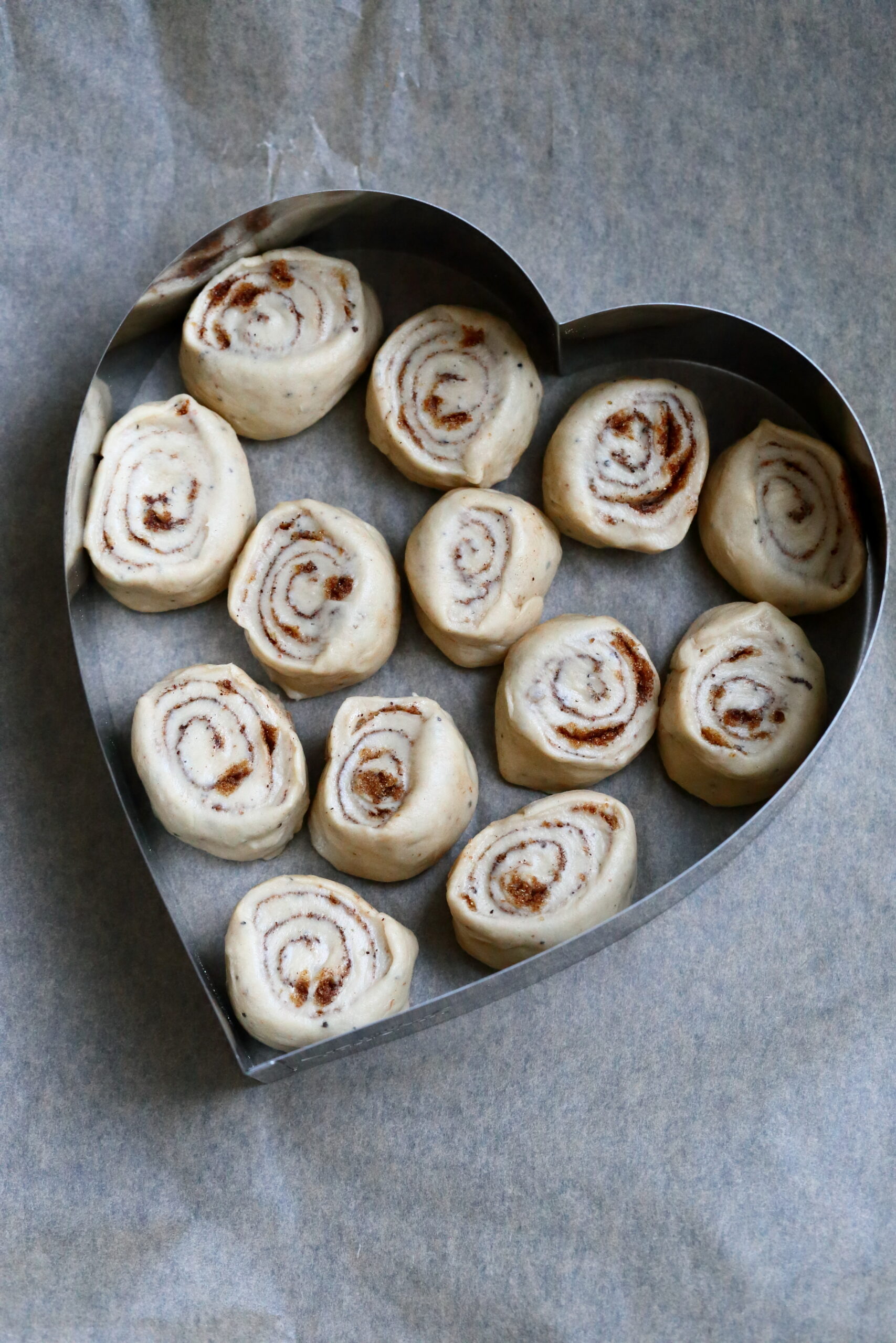 Bostonpullaa varten: Leikkaa rullasta noin 15 palaa. Asettele ne vuoan reunojen sisäpuolelle tasaisin välimatkoin. Jätä hieman tilaa kunkin pullan väliin, jotta ne mahtuvat leviämään ja nousemaan uunissa.