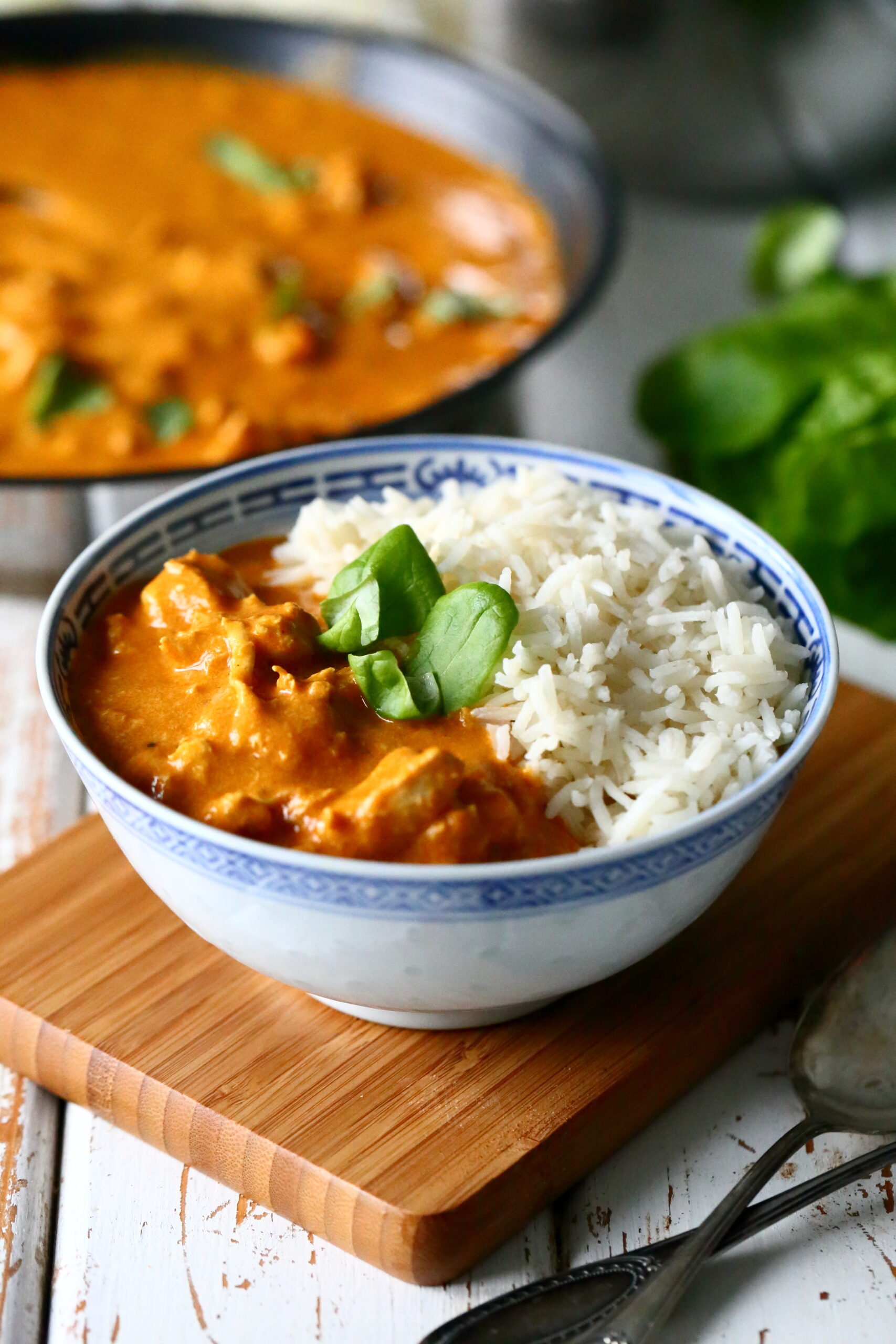 Tämä herkullinen, ihanan mausteinen kanakorma maistuu mein koko perheelle niin hyvin, että tästä on tullut jo miltei yksi vakioruoista. Aikoinaan ajattelin tämän tyyppisen ruoan olevan vaikeatekoista, mutta loppujen lopuksi kastike syntyy melko helposti yhdessä pannussa tai kattilassa.