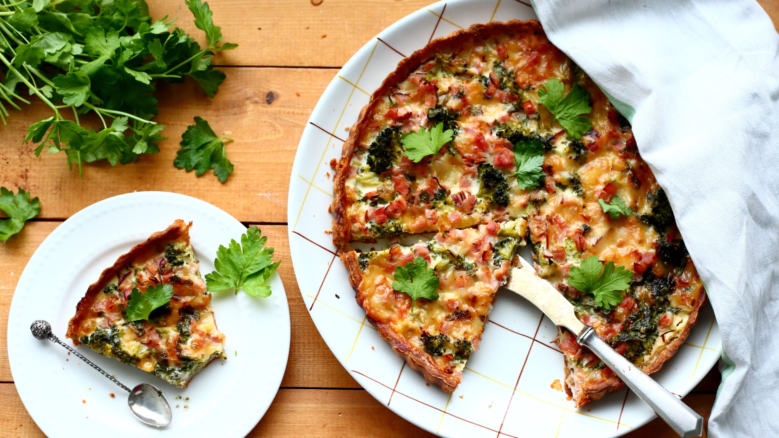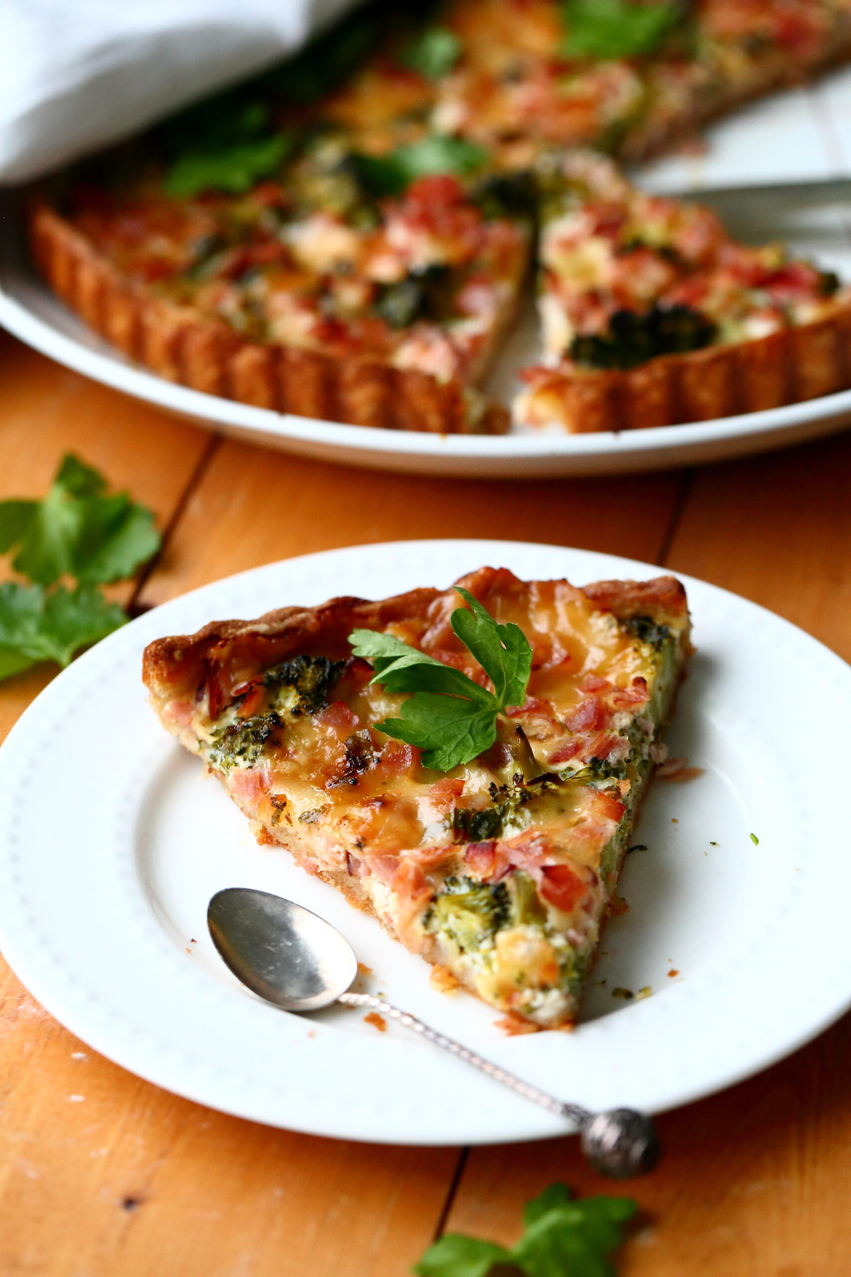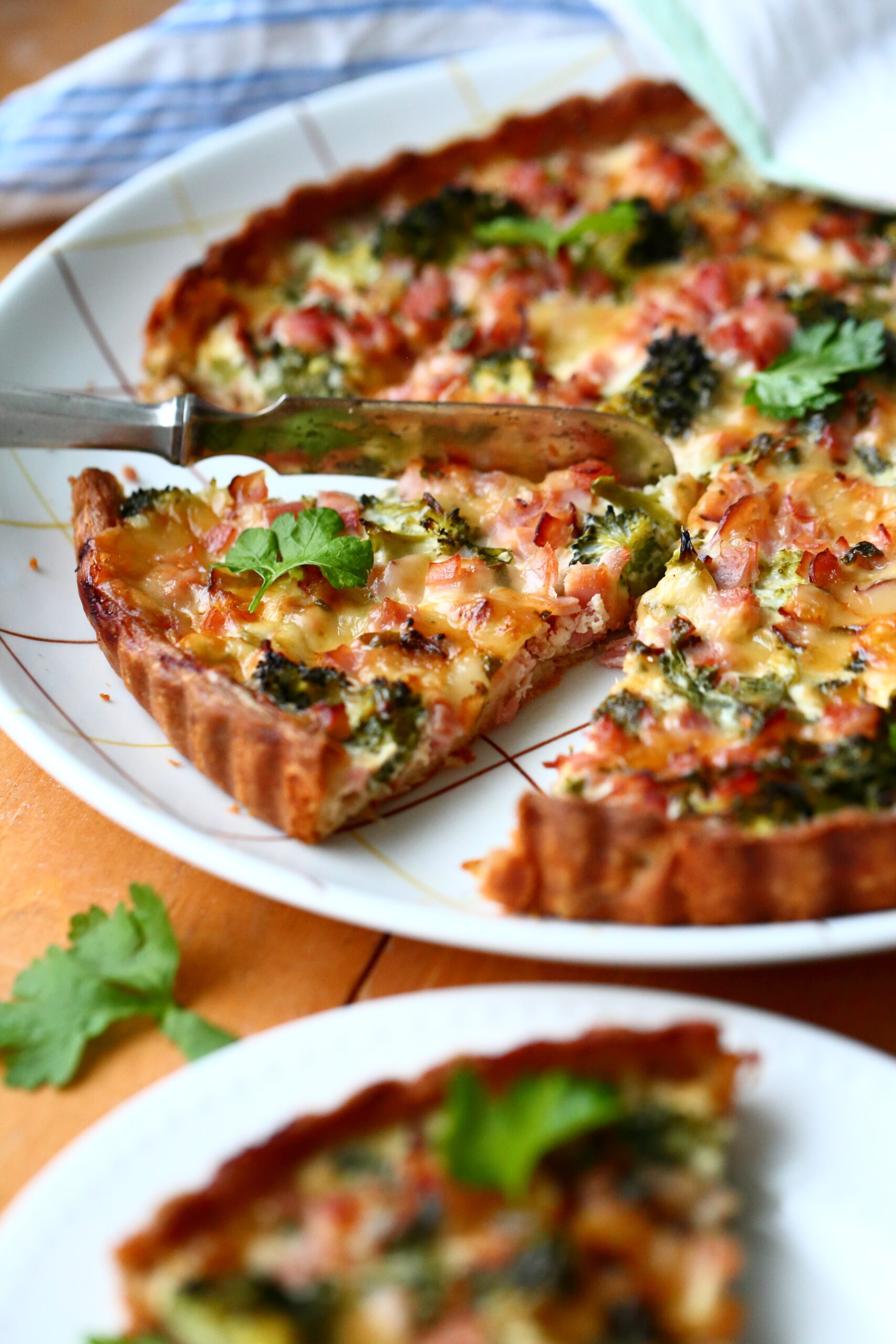 Tämä parsakaali-kinkkupiirakka valmistuu pitkälti samalla tavalla ja samoista aineista kuin yksi parhaista suolaisista piirakoista eli Ranskalainen kinkku-juustopiirakkakin. Piirakassa on itsetehdystä rahkavoitaikinasta kaulittu pohja, jota on tuunattu hitusen terveellisemmäksi korvaamalla osa vehnäjauhoista kuitupitoisemmilla grahamjauhoilla. Täytteestä löytyy kinkku-juustopiirakan tapaan sekä kinkkua että juustoa, mutta siihenkin on saatu kevennystä, lisämakua ja lisätäytettä parsakaalista.