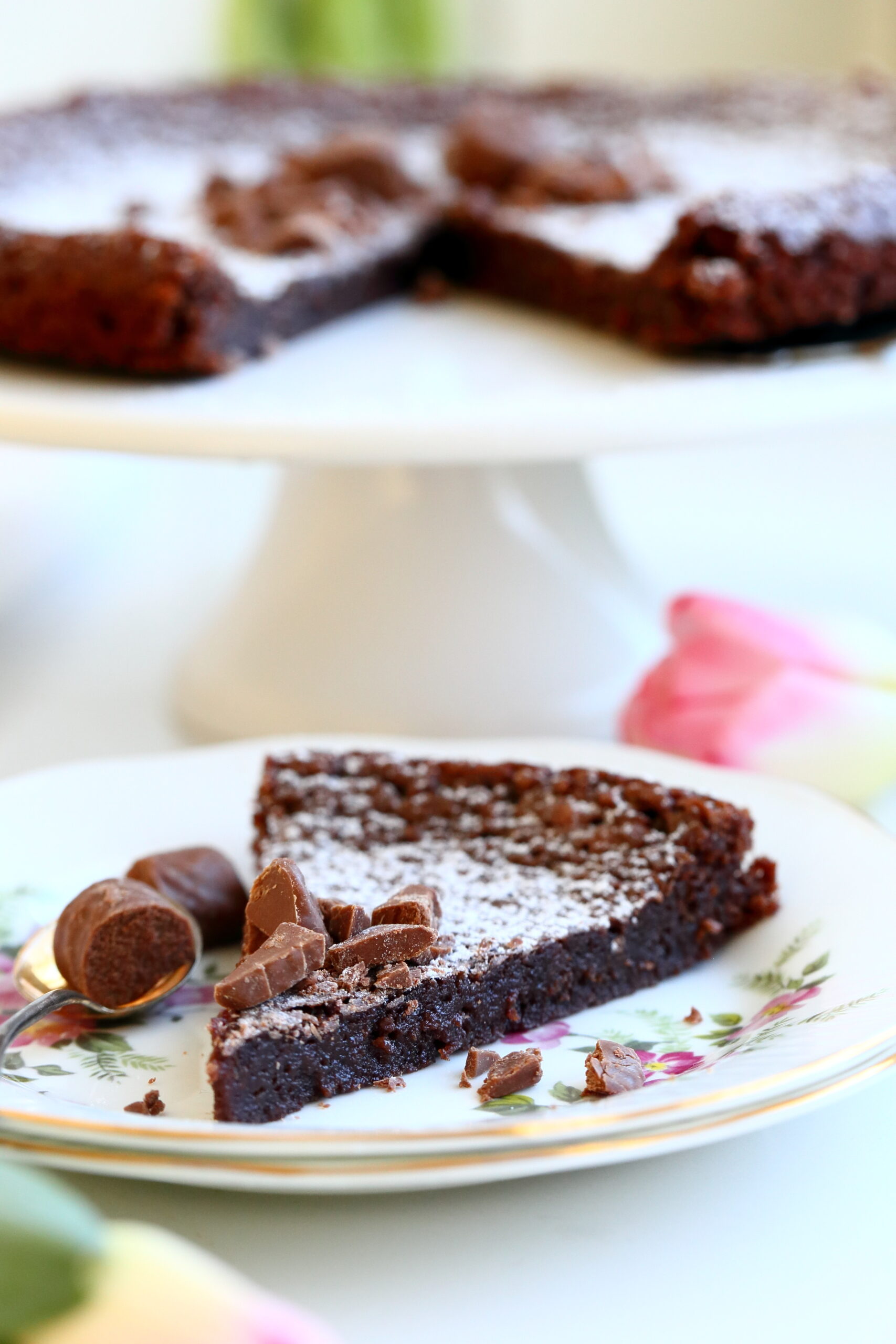Pätkisten ostamisen jälkeen mielessäni on pyörinyt lähinnä vain tämäntyyppinen mutakakku. Ja kun kerran jotain saan päähäni, en pääse siitä eroon ennen kokeilemista. Ja hyvä niin, koska tässä yhdistyi kaksi lemppariani; pätkis ja mutakakku. Nam!