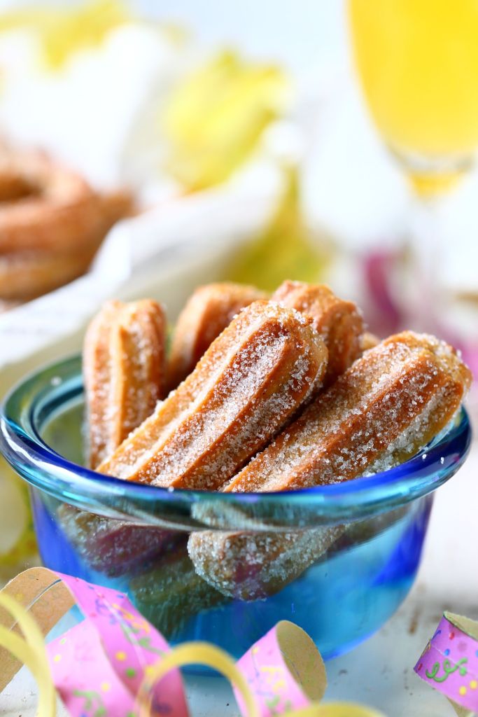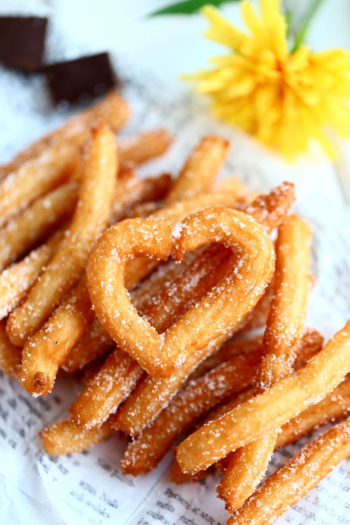 Churrot eli munkkitangot onnistuvat myös munattomina. Tätä ohjetta varten tarvitset uunichurroista poiketen friteerauskeittimen tai kattilan+öljyä kuumassa öljyssä keittämistä varten.