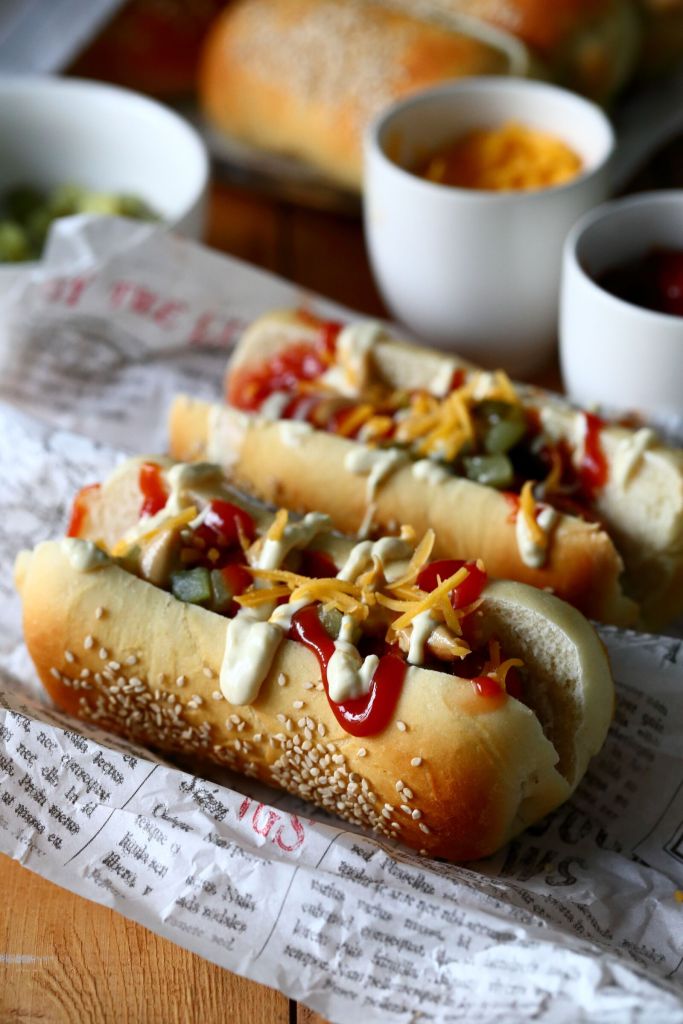 Vapun suolaisen puolen kruunaa itse tehdyt hot dog -sämpylät, jotka voi vappumaisesti täyttää nakeilla ja oman maun mukaan siihen sopivilla erilaisilla tilpehööreillä. Nuo omatekoiset sämpylät ovat aivan ihania!