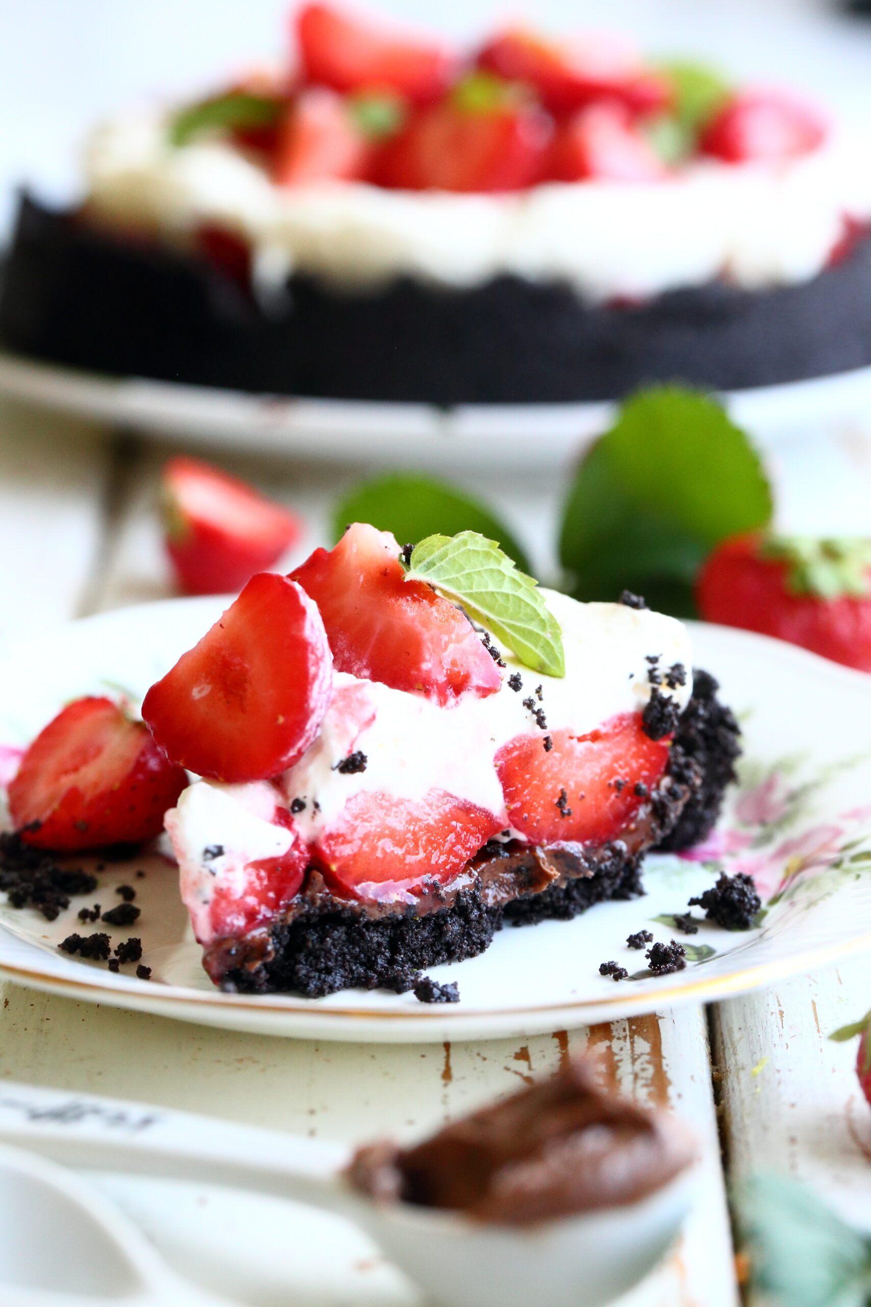 Mansikka-nutellapiirakka on manoffee-tyyppinen piirakka, mutta tummaan keksipohjaan tehtynä ja Nutellalla täytettynä. Piirakka on muutosten myötä hieman alkuperäistä versiotaan vähemmän makea. Piirakka on niin helppotekoinen, että se sopii vaikka yllätysvieraille tarjottavaksi, kunhan kaapista löytyy ne 4-6 piirakkaan käytettävää ainetta. Aktiivista tekoaikaa nimittäin tarvitaan vain noin vartti tai hieman päälle. Tekemisen jälkeen piirakan voi laittaa vielä hetkeksi asettumaan jääkaappiin, jonka jälkeen komeuden saa nostettua pöydälle tarjottavaksi.