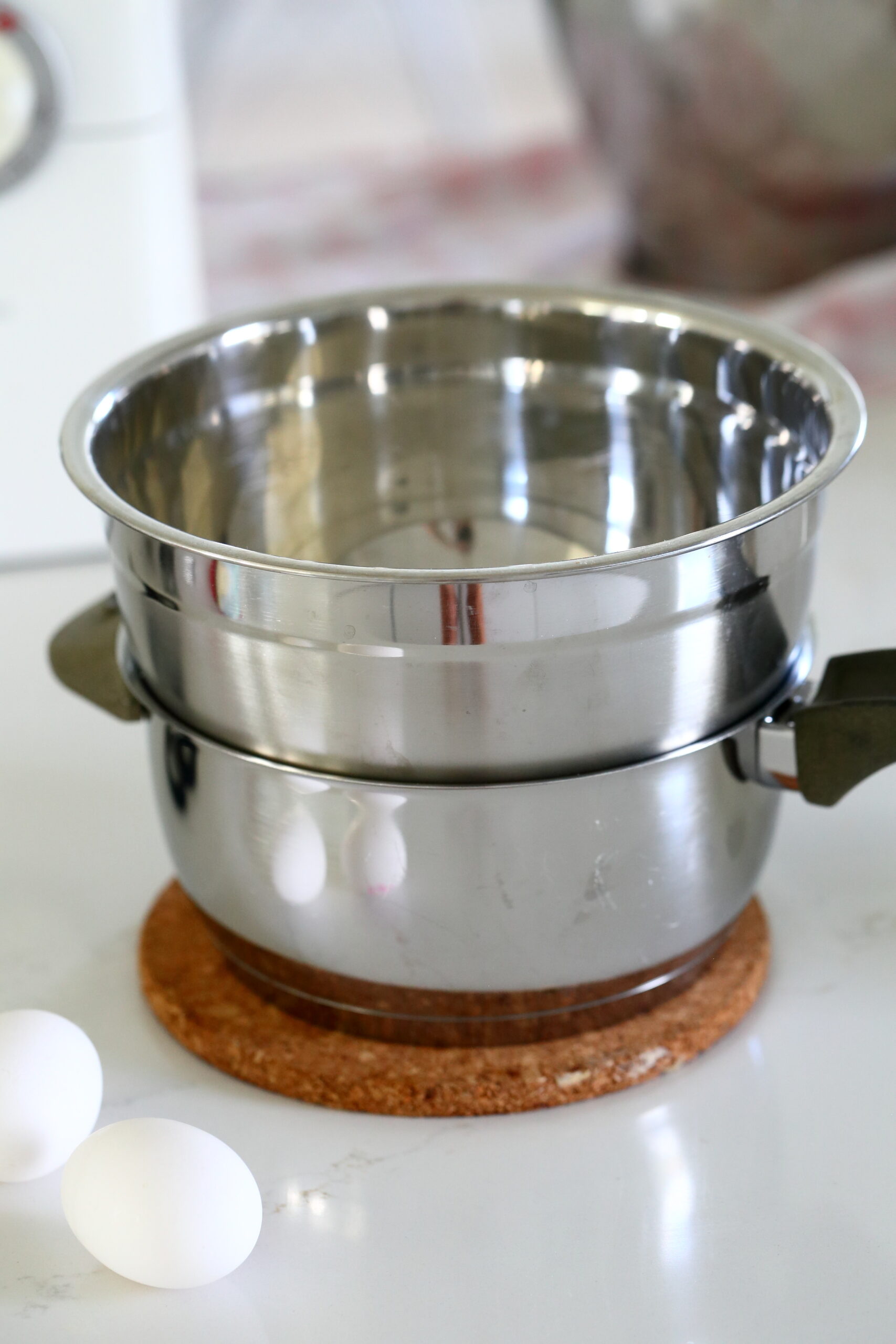 Tee sveitsiläinen marenki. Laita valkuaiset ja sokeri metallikulhoon ja nosta kulho vettä sisältävän kattilan päälle. Kulhon pitää olla kattilaan isompi, niin että kulho pysyy paikoillaan kattilan reunojen varassa. Näin ikkääst.