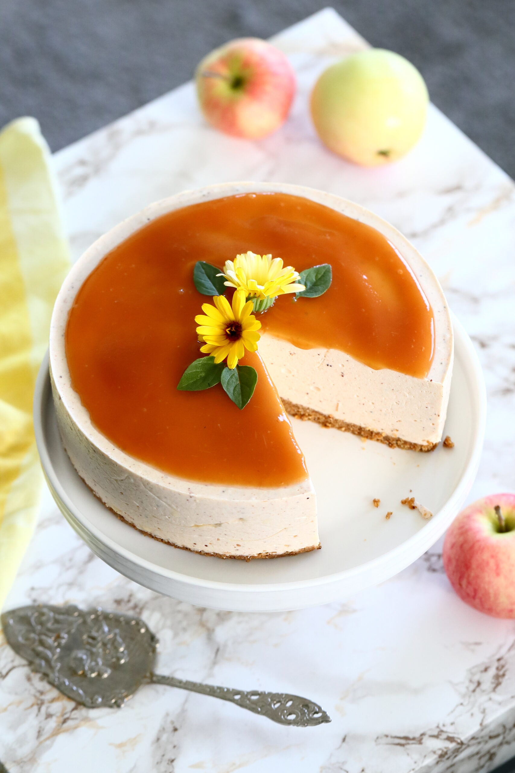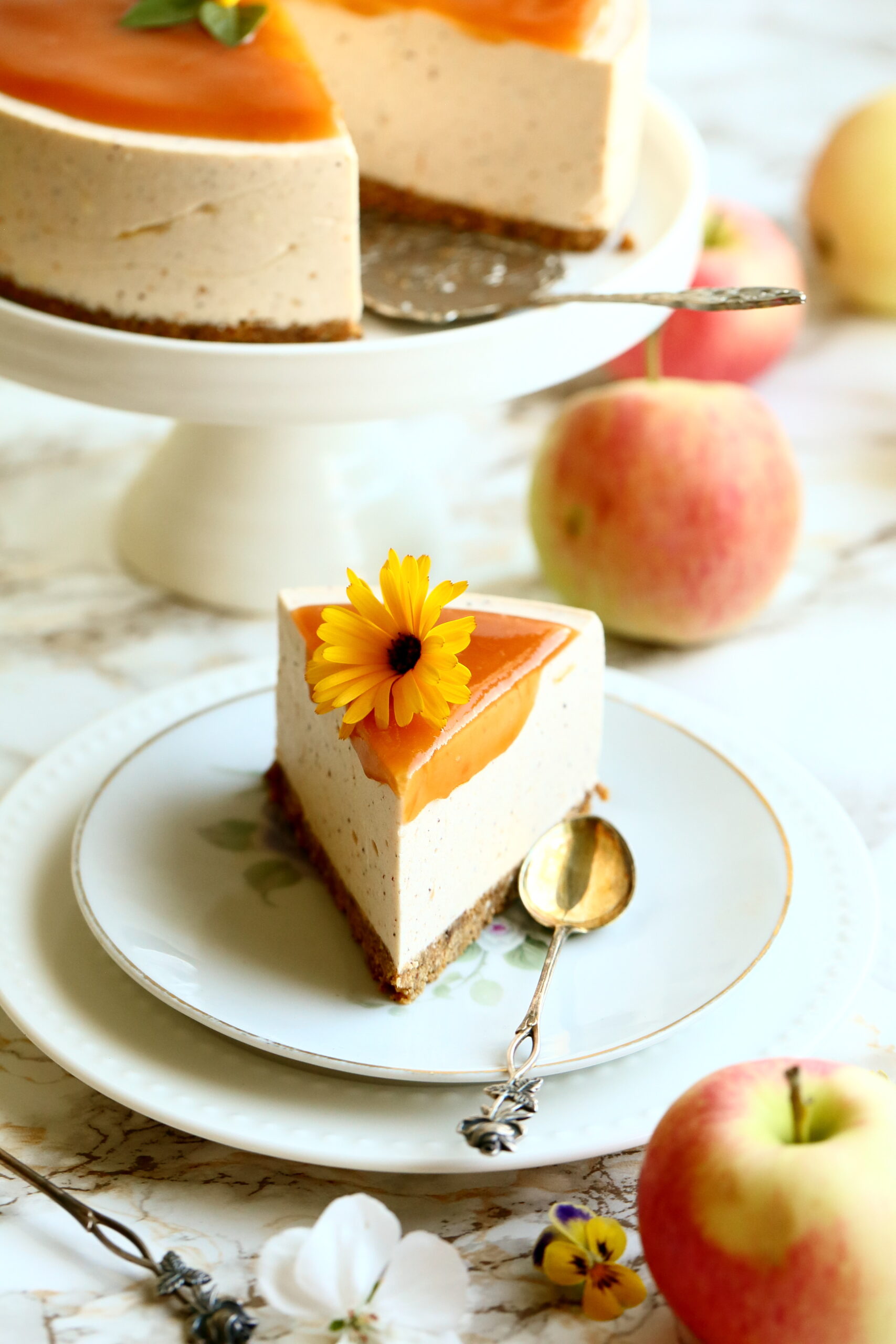 Poista kakku vuoasta ja nosta kakkulautaselle. Levitä päälle vielä kerros uuniomenahilloa. Ja eikun kakun kimppuun.