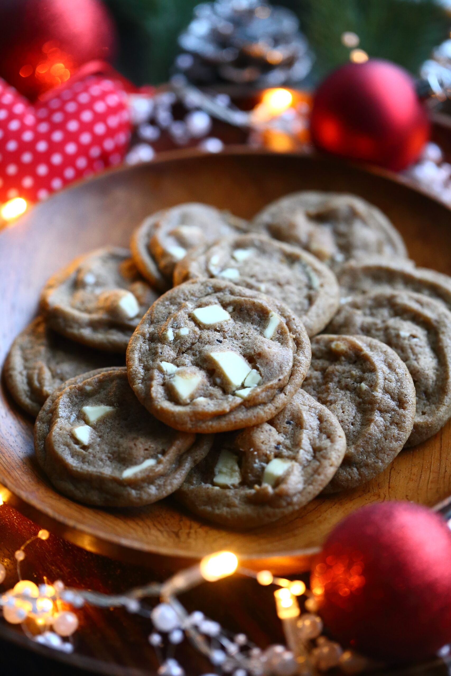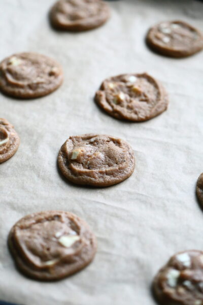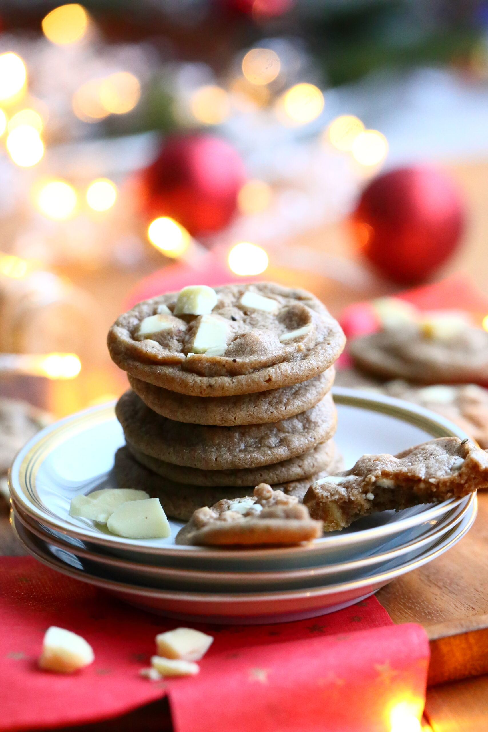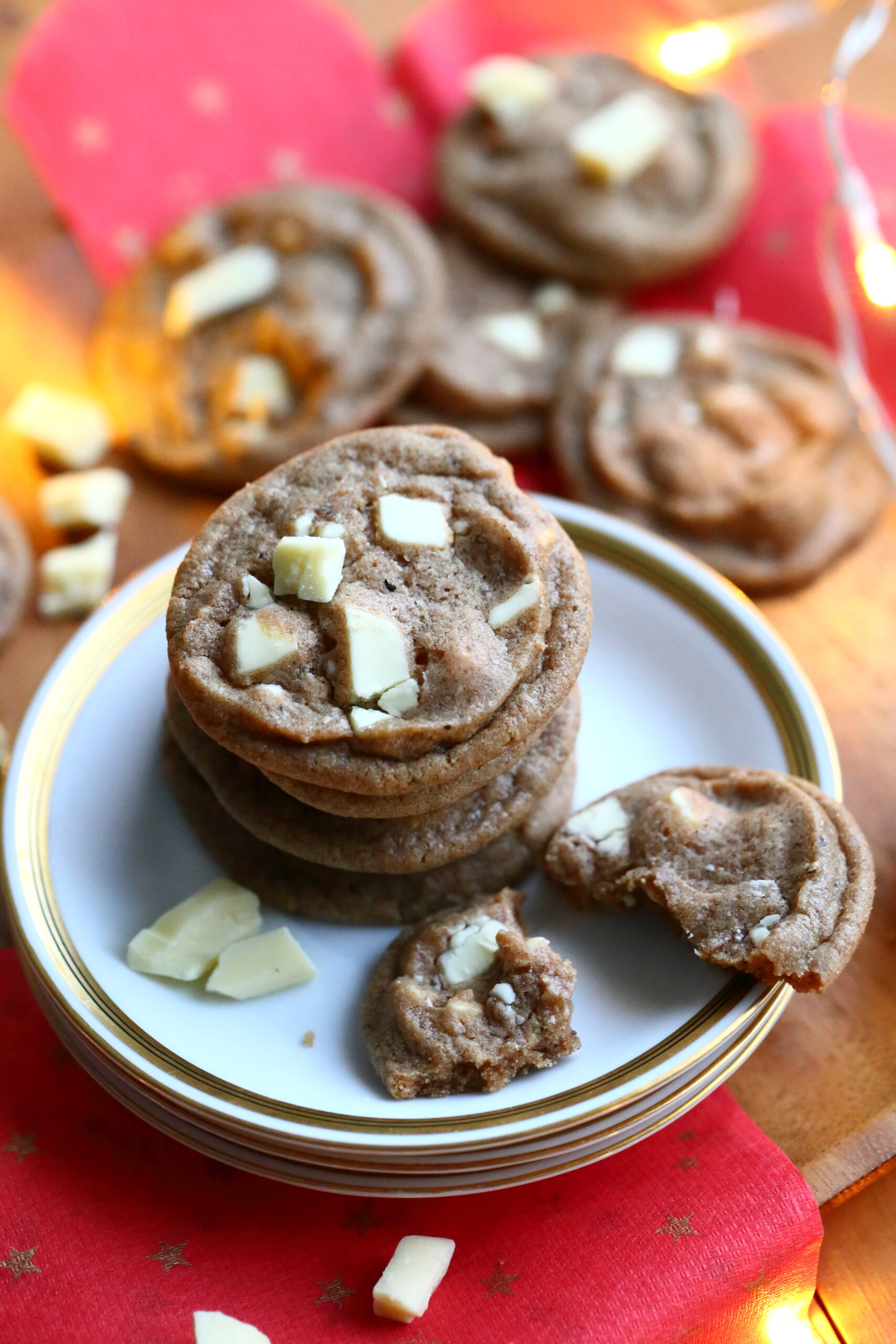 Nyt, tällä sitkeiden valkosuklaa-piparkakkukeksien ohjeella, kypsät pikkuleivät muistuttavat hyvin paljon raakaa piparkakkutaikinaa. Nämä ovat meheviä, keskeltä hieman sitkeitä ja reunoilta rapeita. Eli aivan kuin parhaat isot sitkeä suklaahippukeksit. Näissä on vain tumman suklaan tilalla valkosuklaata ja lisäksi taikina on maustettu reilusti lempparipiparkakkumausteillani.