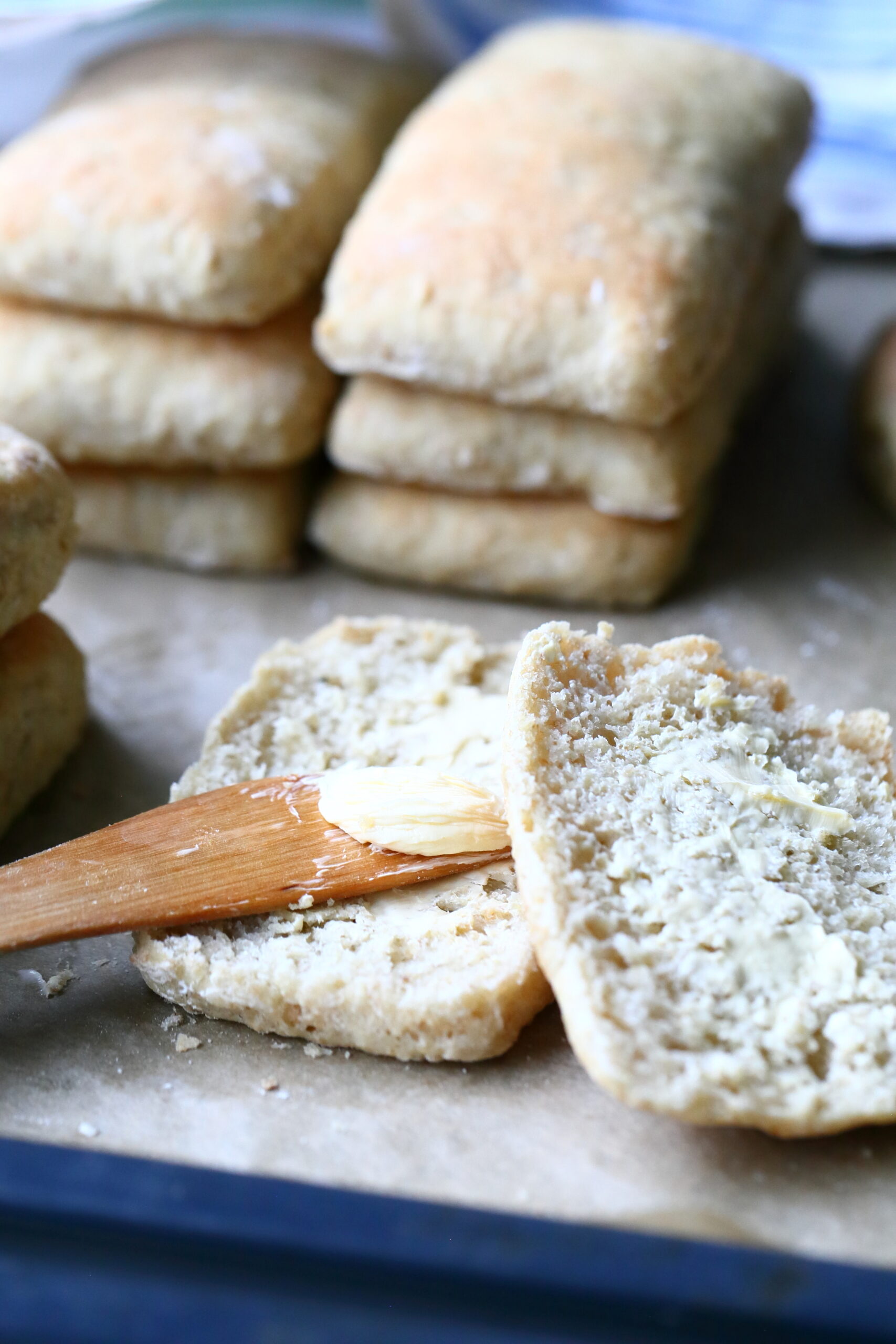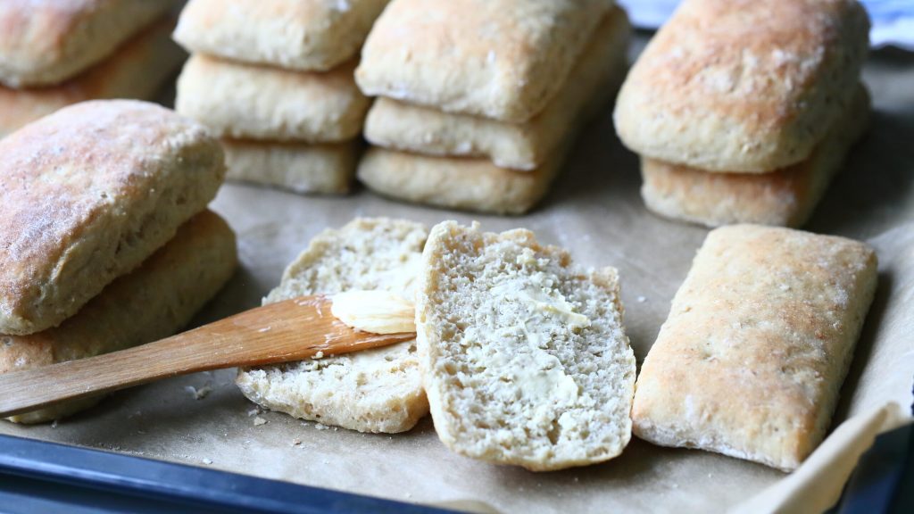 Jäähdytä leipiä hetki. Halkaise, voitele ja eikun nauttimaan!