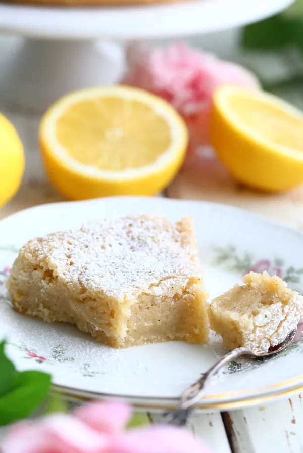 Toinen vähän samantyyppinen ohje on nämä Lemon bars/sitruunaruudut. Näiden täyte on aivan mielettömän hyvä; se maistuu aivan lemno curdille 😛