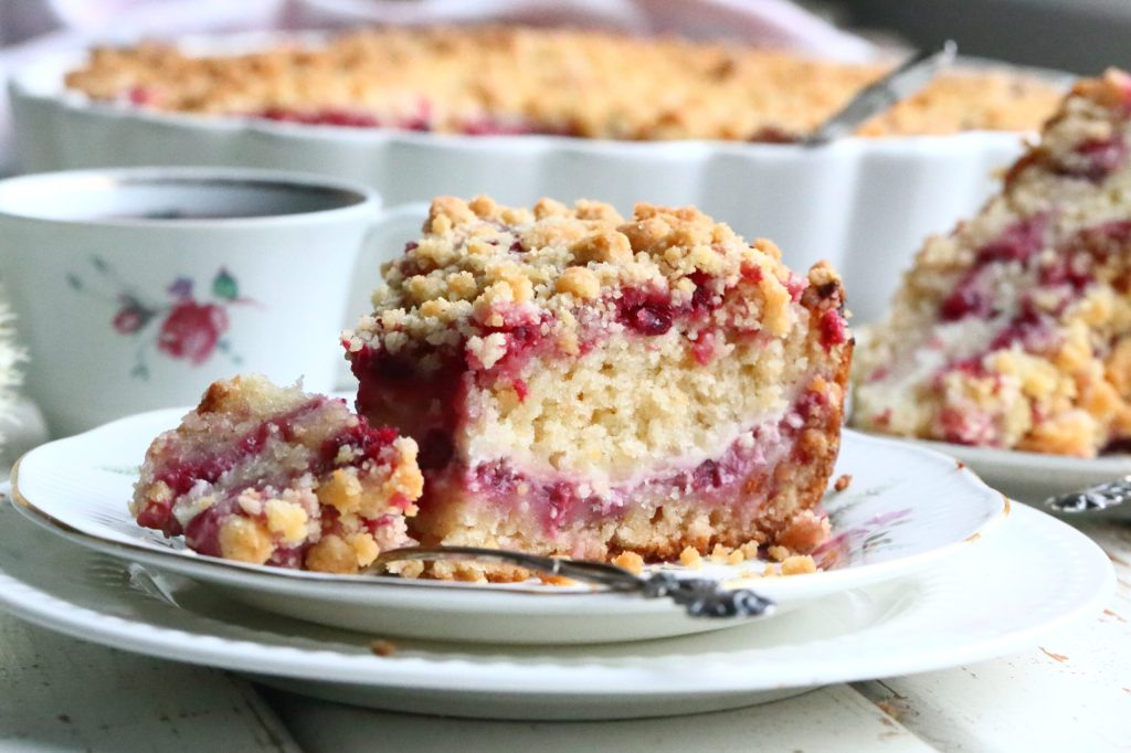 Leivoin muutama päivä sitten puolukka-kauraneliöitä, mutta vaikka ne olivatkin hyviä, mieleeni jäi kytemään ajatus jostain muhkeammasta kosteasta piirakasta. Aina välillä somessa tulee vastaan muhkeita, mehevän näköisiä piirakoita, joissa on sisällä rahkaa, tuorejuustoa, jogurttia tai muuta vastaavaa. Rahkaa ja jogurttia on jo aiemmin löytynyt leipomieni piirakoiden täytteestä, mutta tuorejuustoa en muista käyttäneeni. Se siis pääsi täytteeksi tähän muhkeaan, murupäällisen omaavaan piirakkaan.
