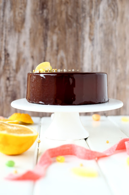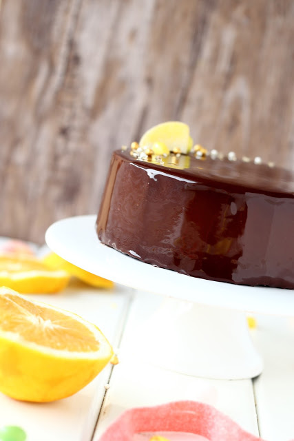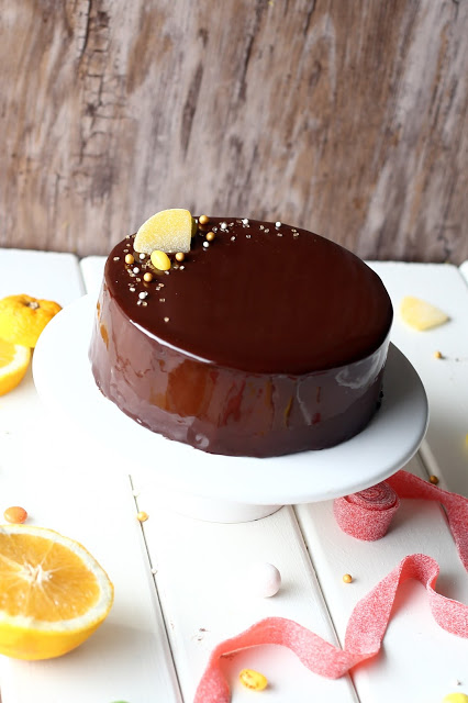Suklainen Mirror glaze ja appelsiini-suklaakakku n. 16 cm vuokaan