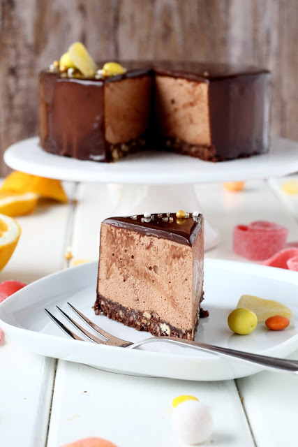 Kuorrute oli niin herkullisen suklainen että. Sen maku muistutti suklaista suklaaganachea, mutta koostumus oli vanukasmaisempi. Ihanaa suklaista herkkua, koko kakku! Appelsiinin takia liiallinen makeus pysyi kuitenkin kurissa ja kakku oli samalla myös raikas.